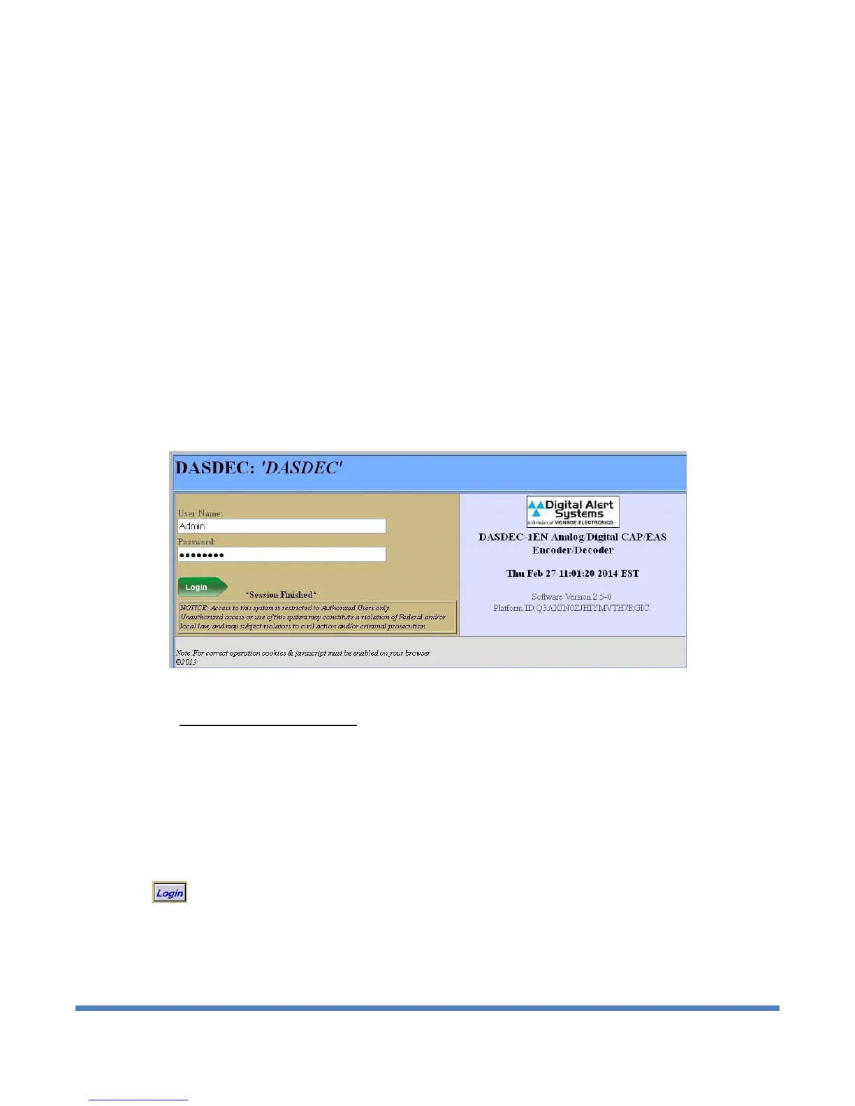 Click the button. With the correct user name and password, the DASDEC II will login. If the user or password is