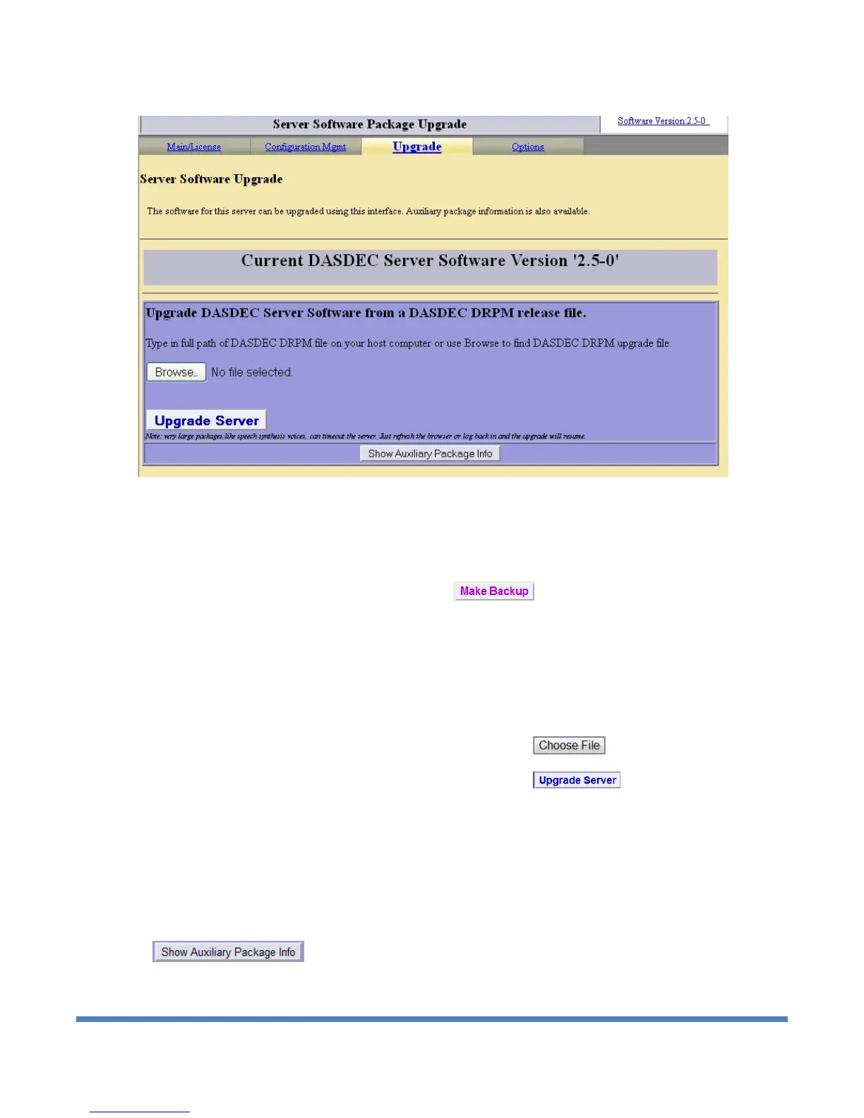Setup > Server > Upgrade web page