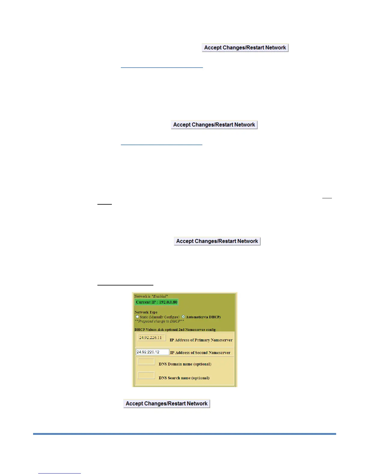 Setup > Network : DHCP Network Configuration