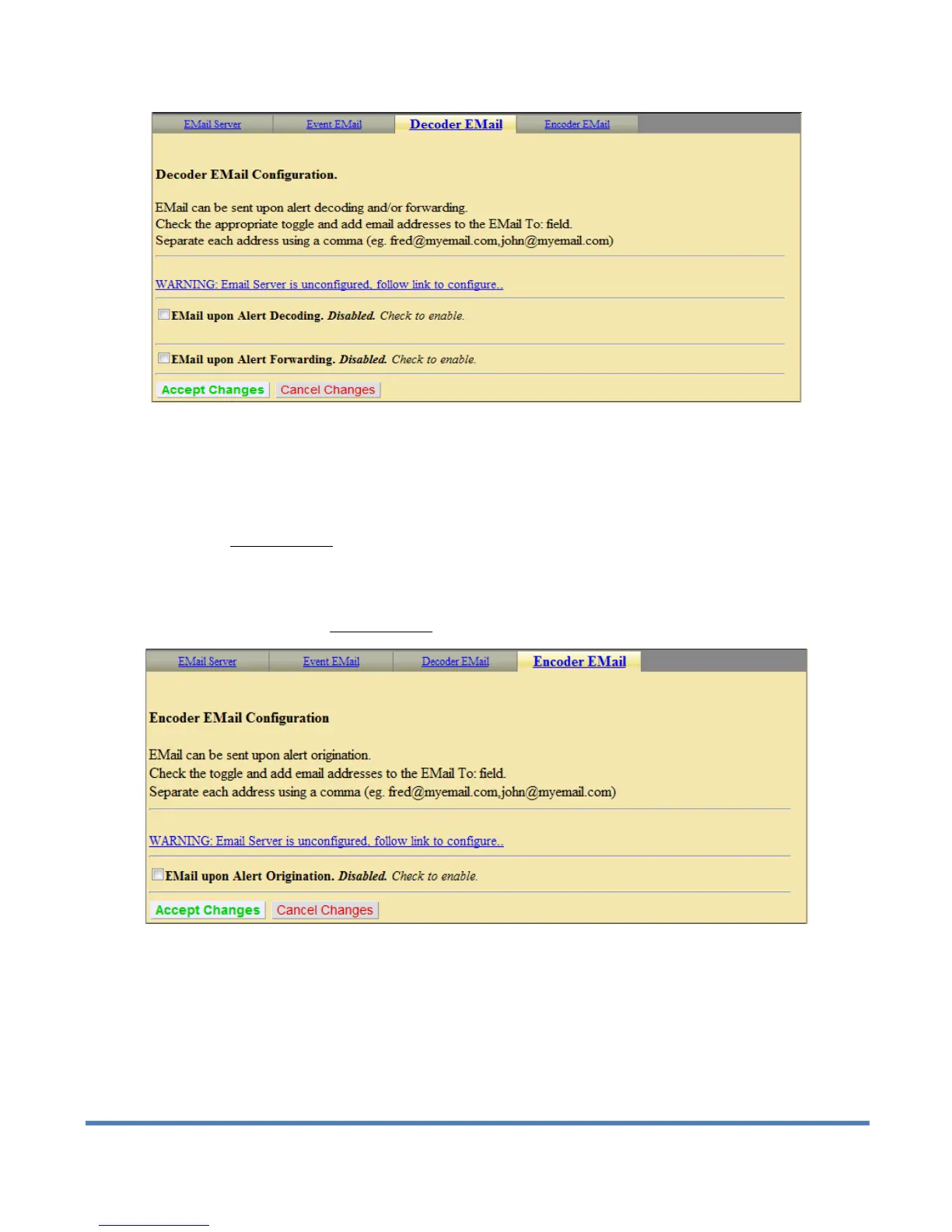 Decoder Email. Click Accept Changes