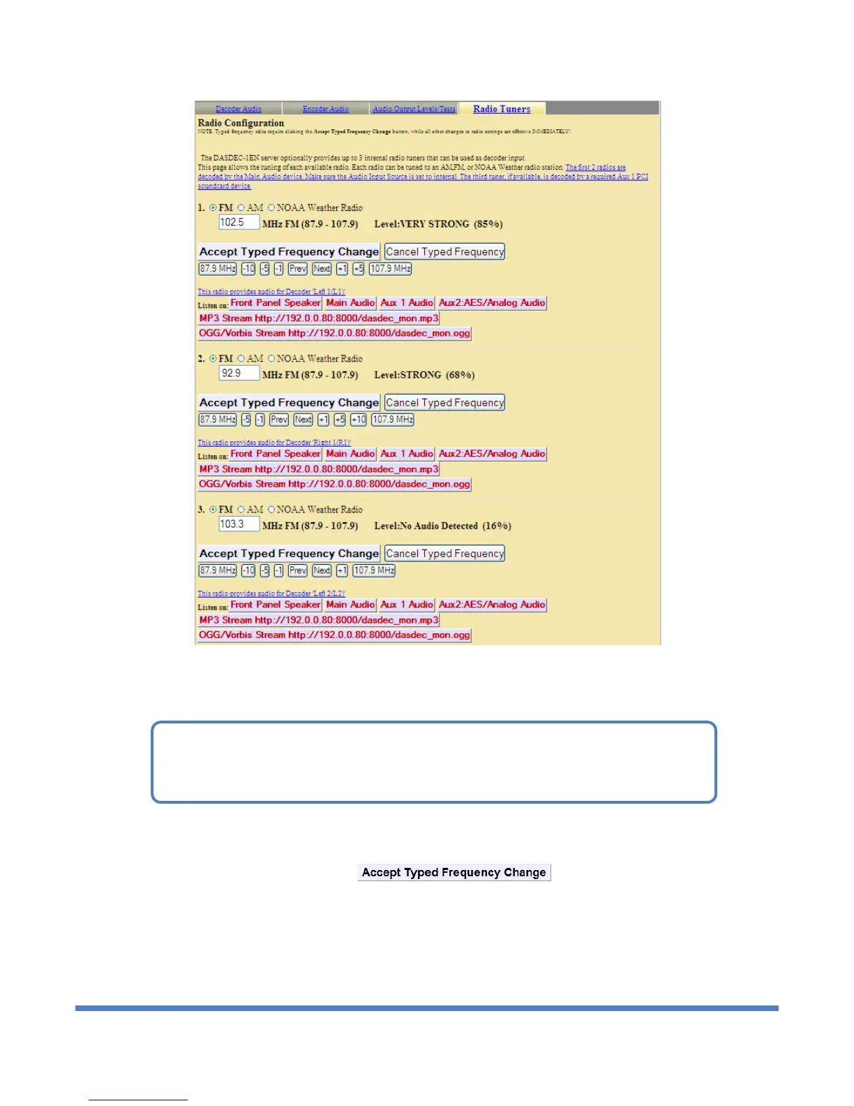 As a convenience, the decoder channel associated with each radio tuner is displayed in an active web link. This