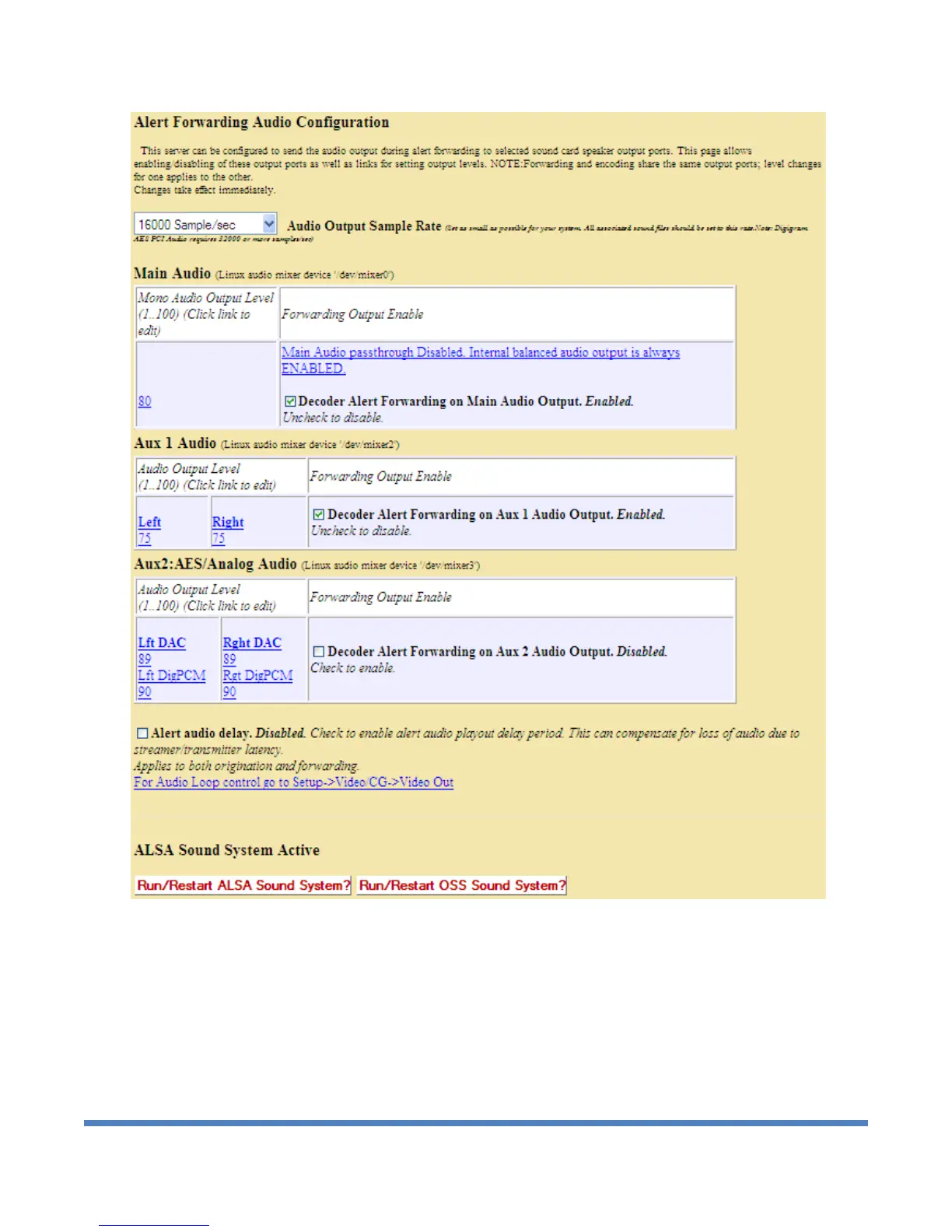 Alert Decoder configuration section for Setup > Audio > Decoder Audio: bottom half of web page
