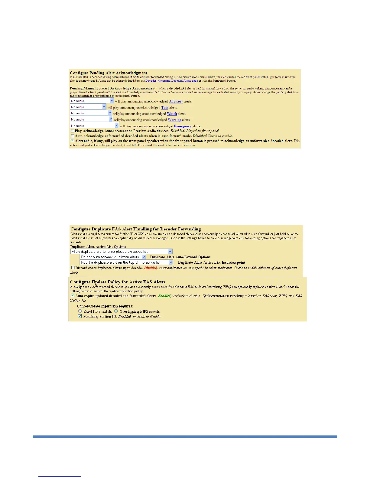 Setup > Decoder > Forwarding web page, Configure Pending Alert Acknowledgment