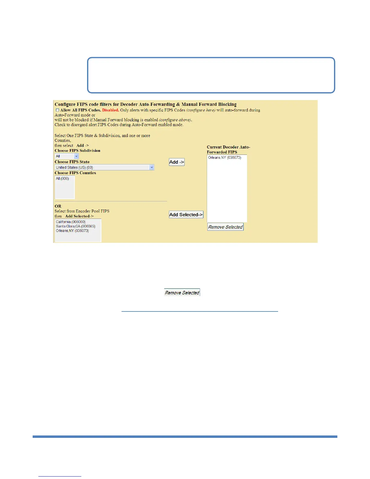 Setup > Decoder, Configure FIPS code filters, bottom section of web page