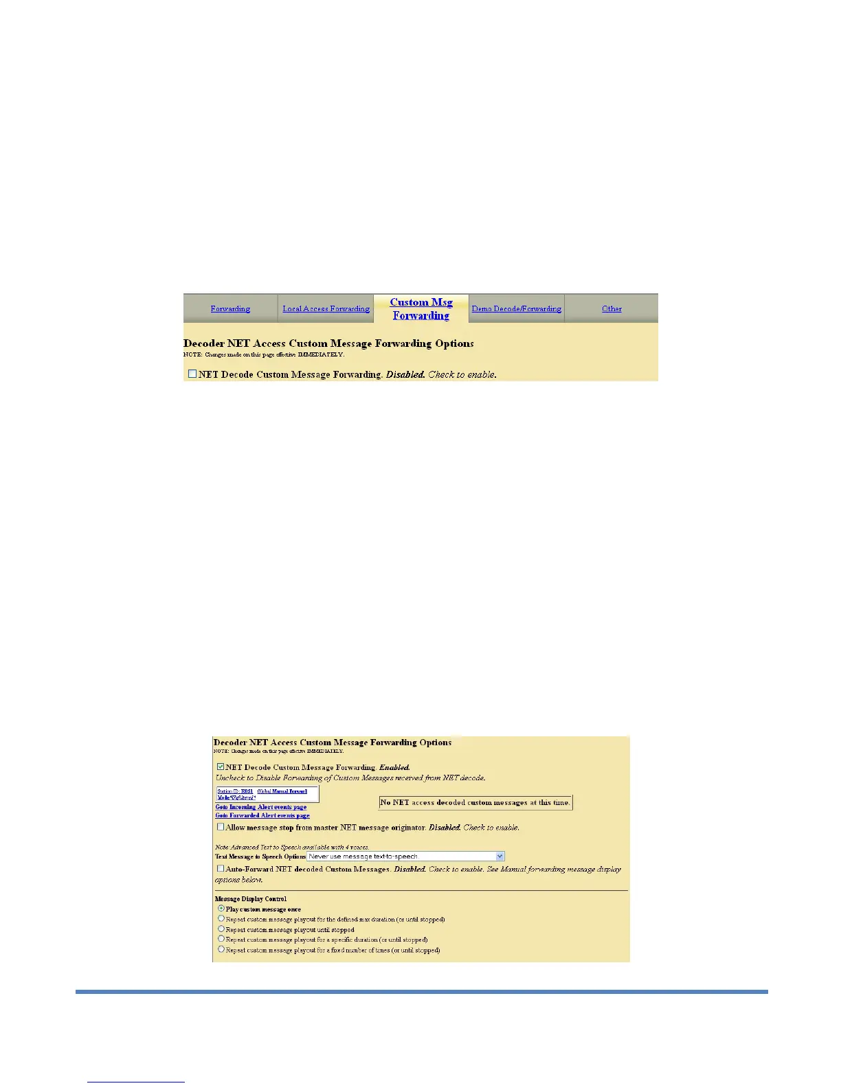 This page allows a user to enable EAS NET decode custom message forwarding and also gives them control