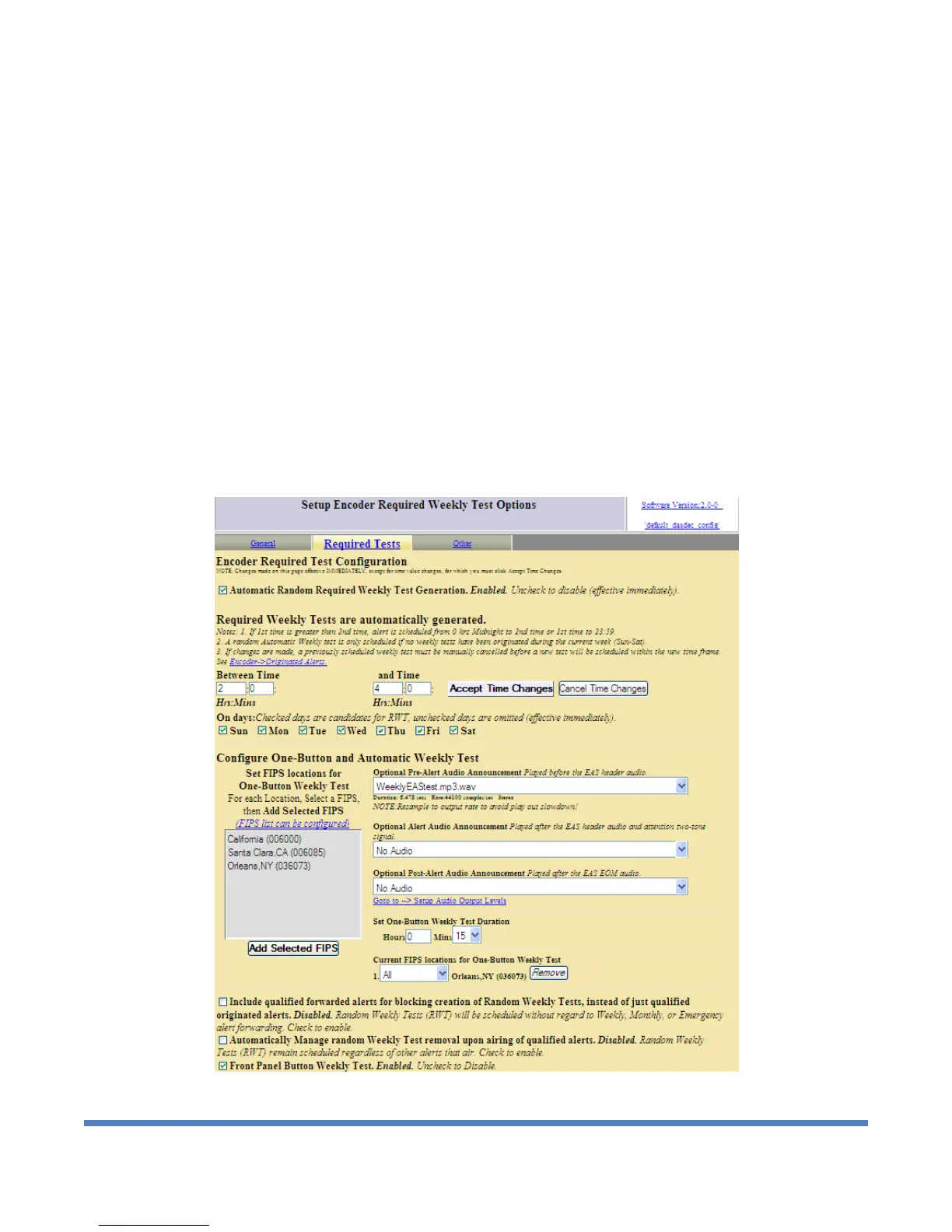 test will be scheduled within the new time frame. See Encoder > Originated Alerts.