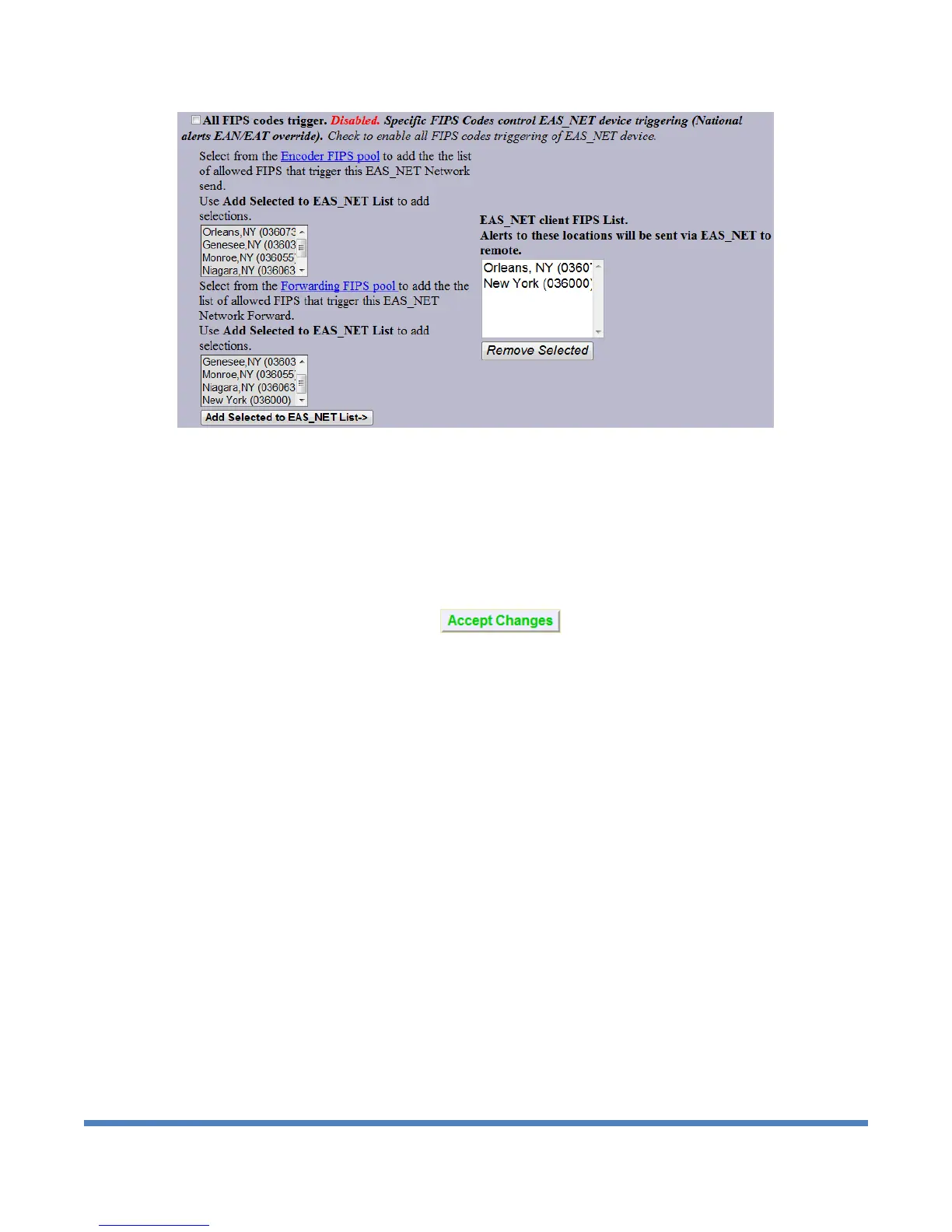 disabled, select EAS codes from the provided lists and add to the client EAS list. If the EAS FIPS codes of