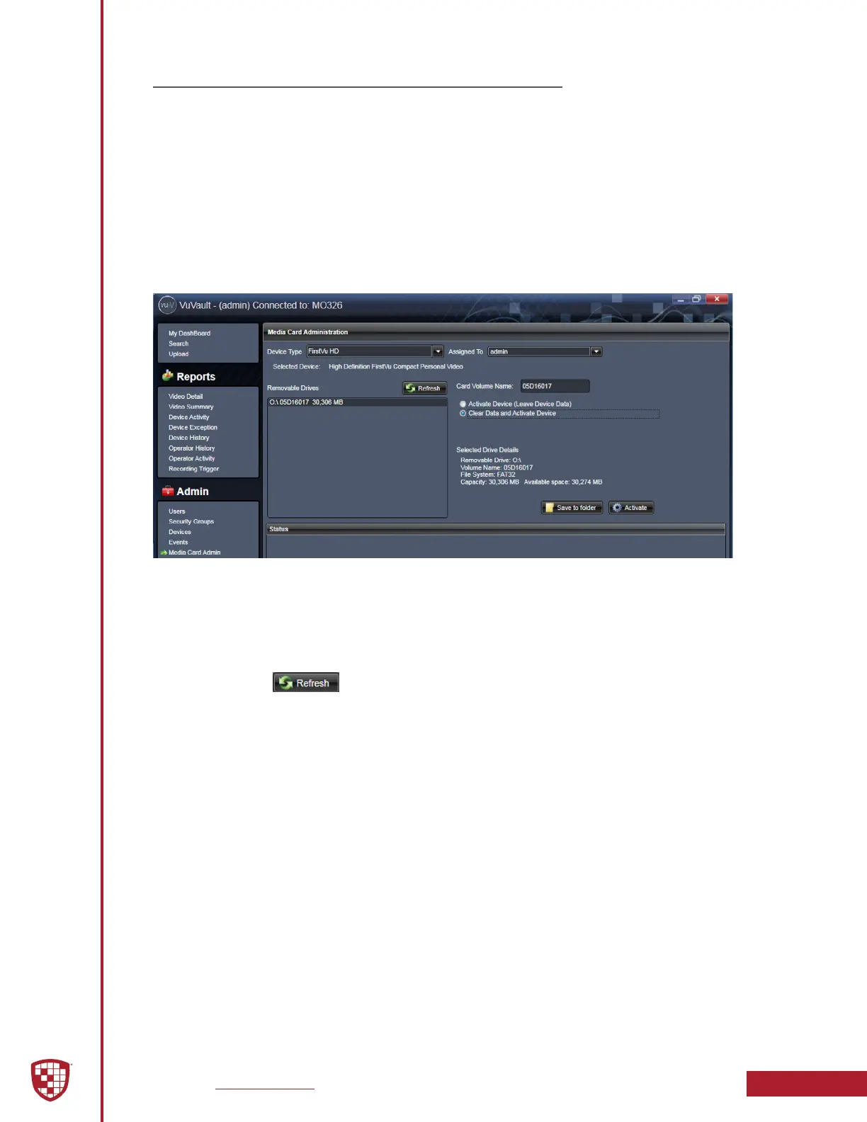 The Media Card Administration function is used to congure the FirstVu HD to the