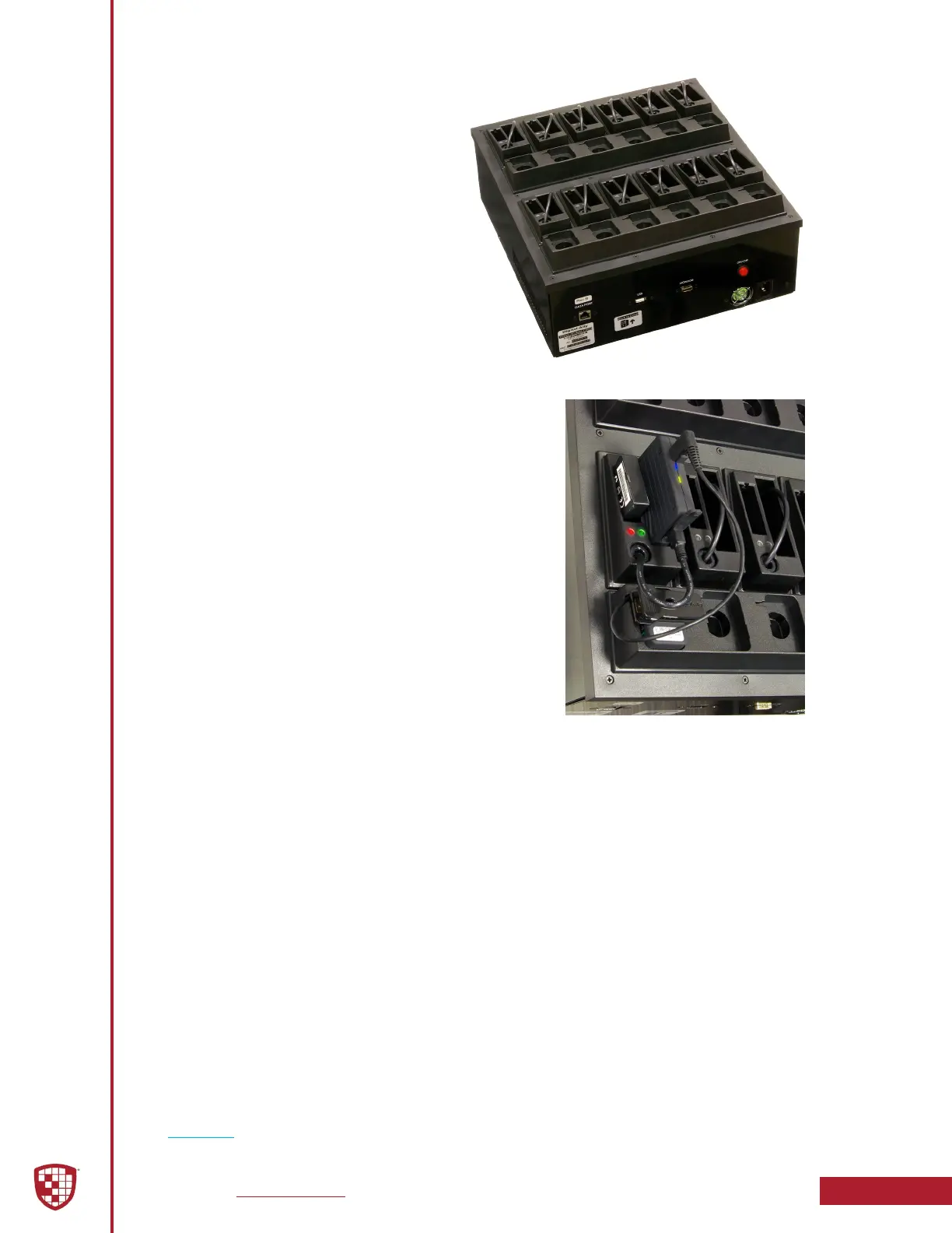 each FirstVu HD in the adjacent charging slot. The red