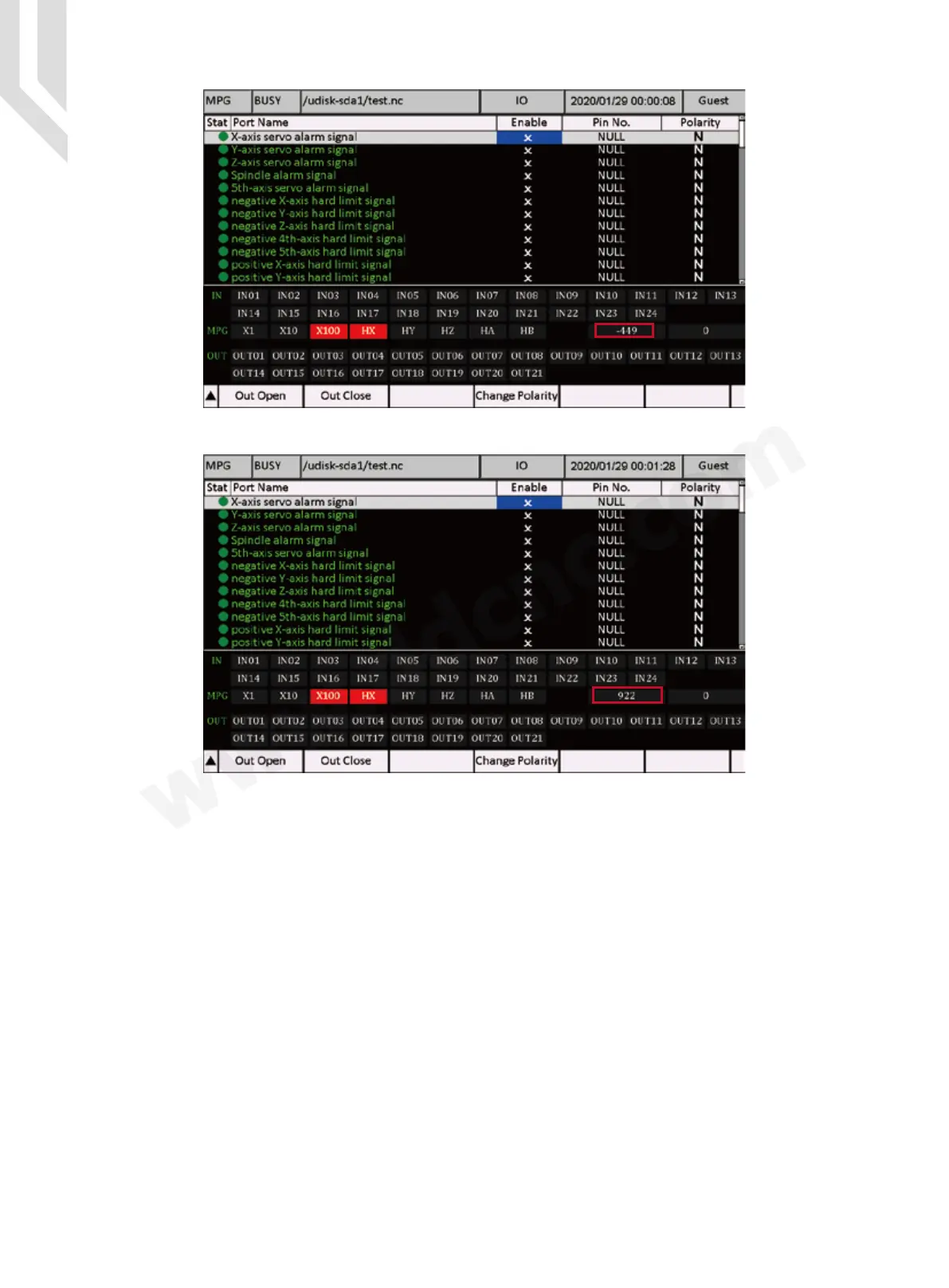 axis the MPG is in, there will be a little mark on the related axis.