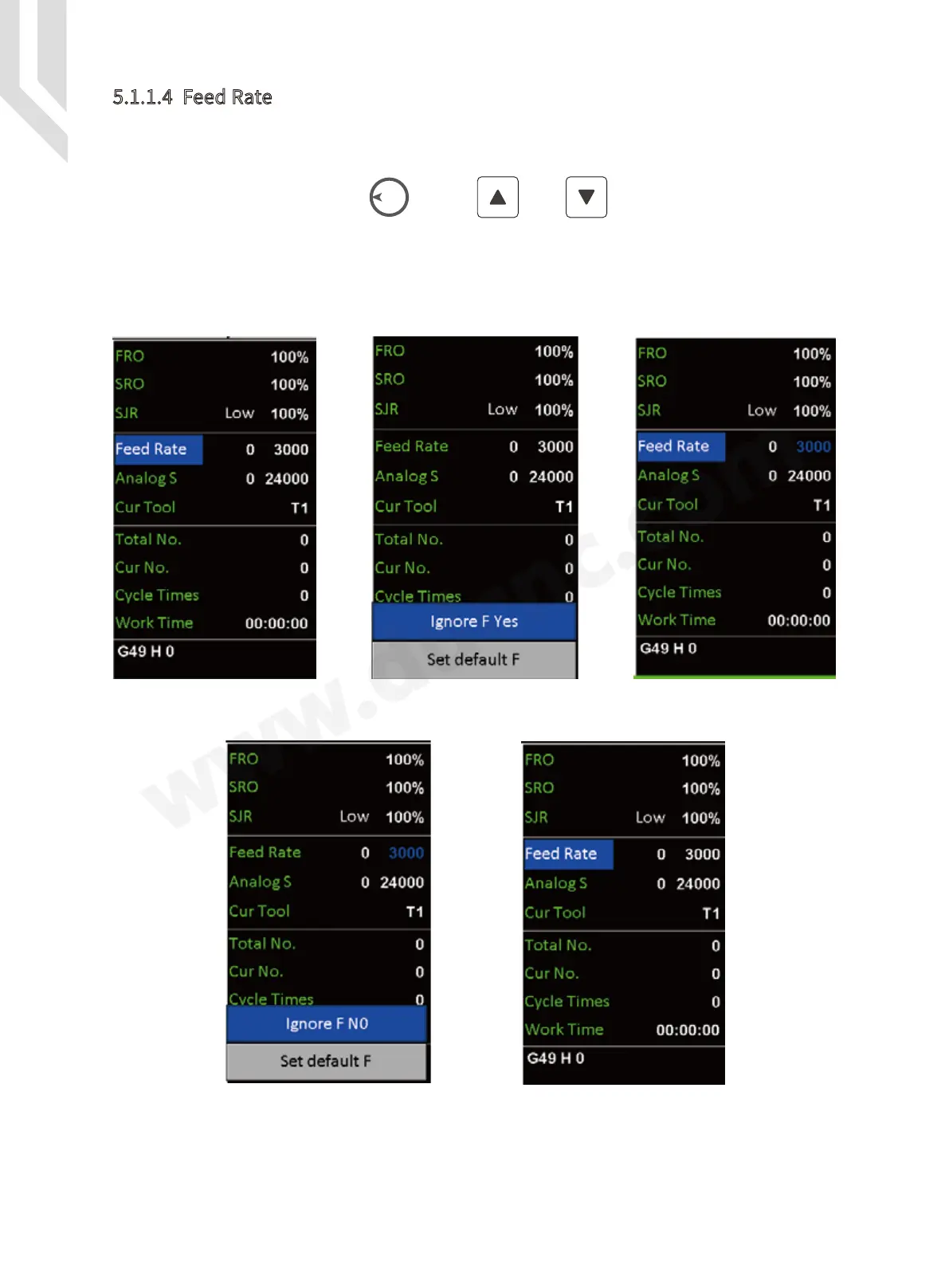 Figure 5-24 Ingore FeedRate Value Figure 5-25 F command from G-code file is active