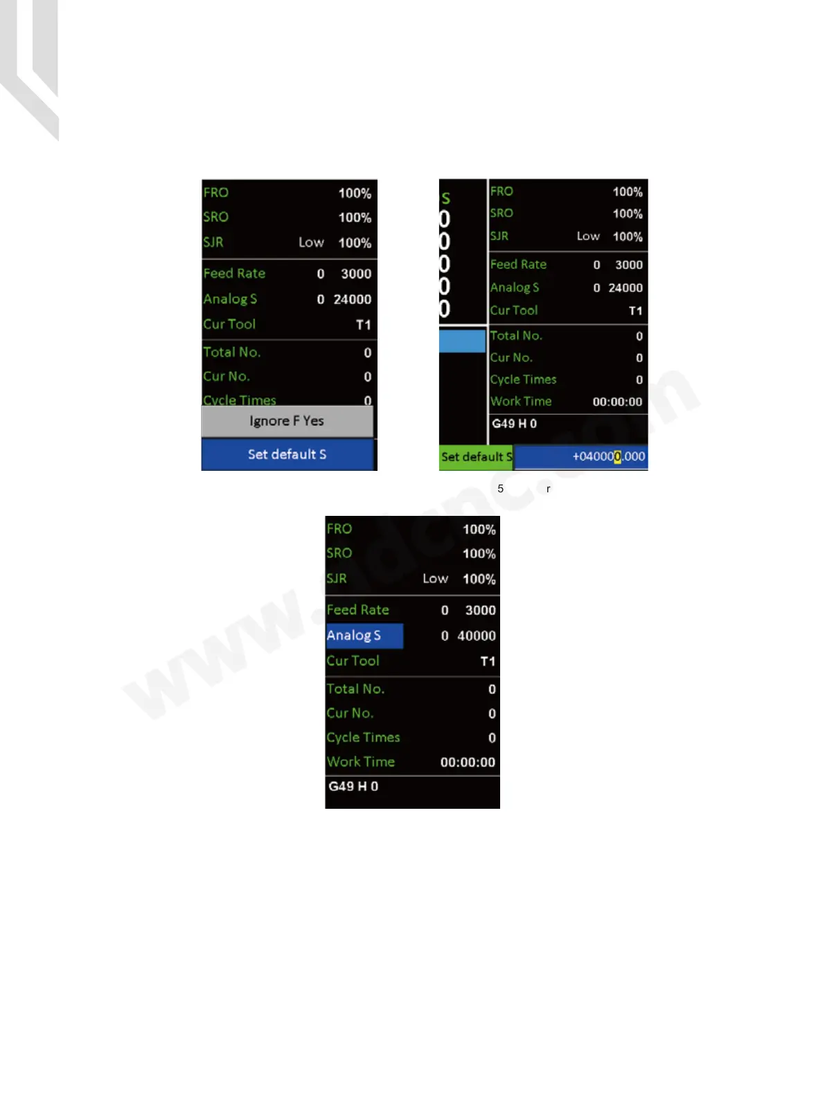 And we can define the Analog Spindle Speed Value by the pressing enter on “ Set Default S