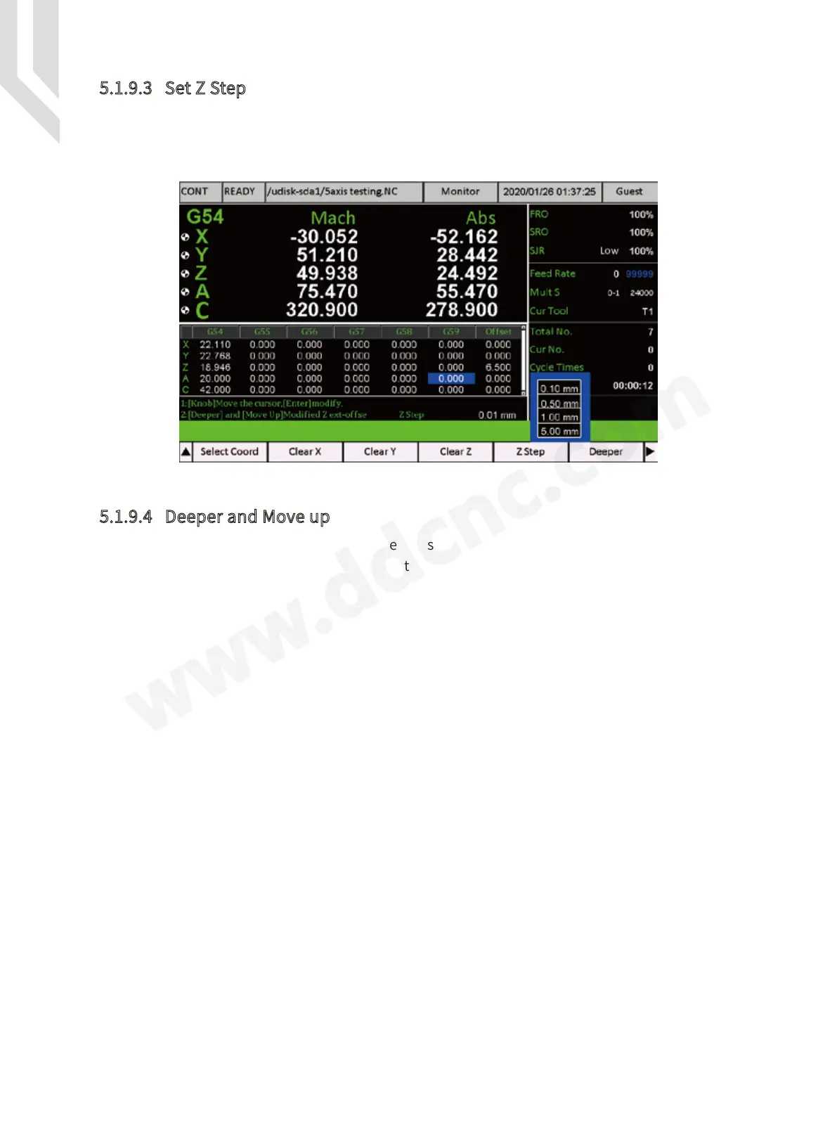 We can set Z step by pressing the “ Z step ” Key (F5). The one step number can be shift