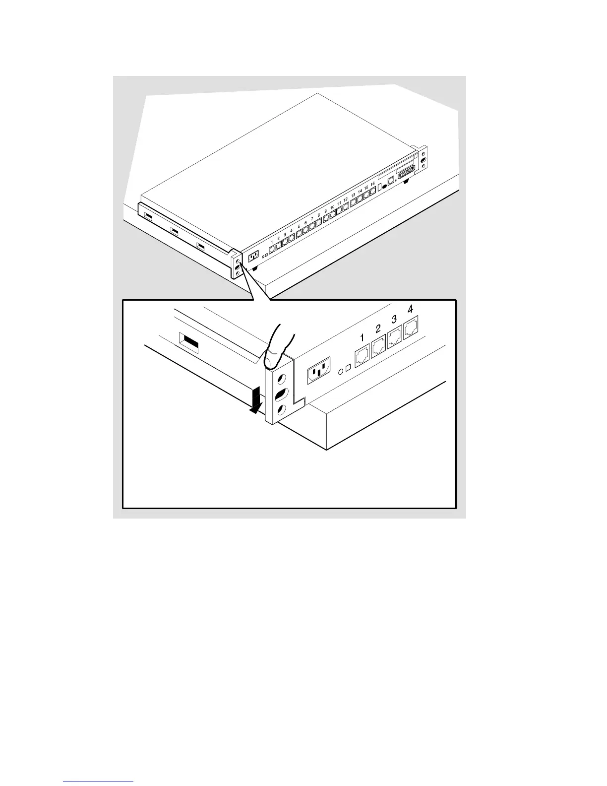 1. Place the DECserver 700 on a table top with the bracket overhanging