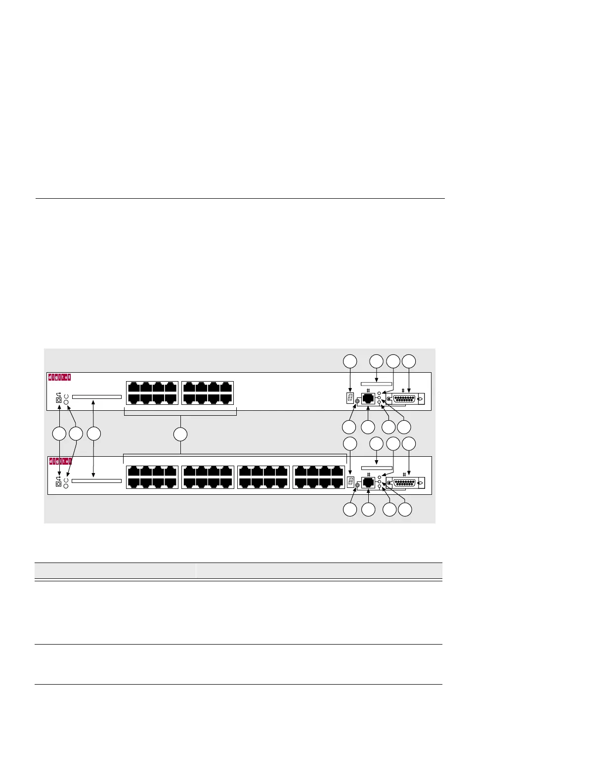 Table 1-1 describes the front panel components, and LEDs, that are illustrated in