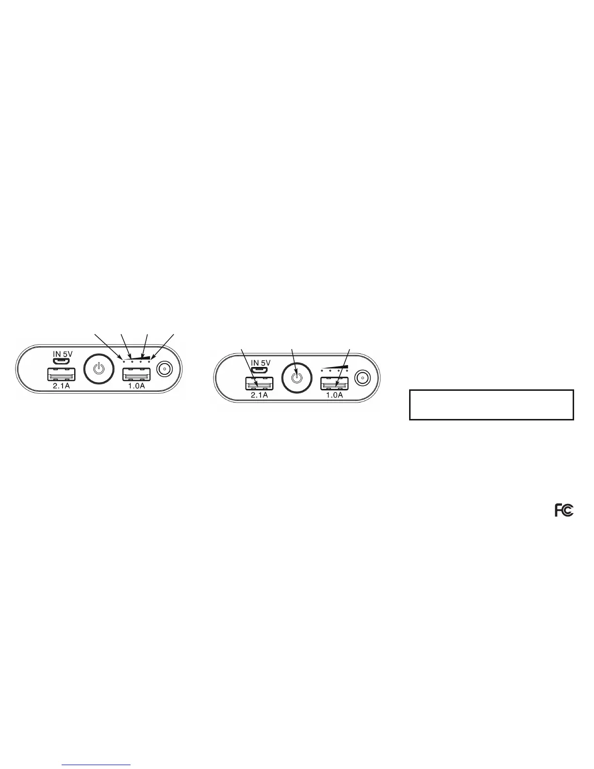 • Three LEDs Lit: 75% Charged • Four LEDs Lit: 100% Charged