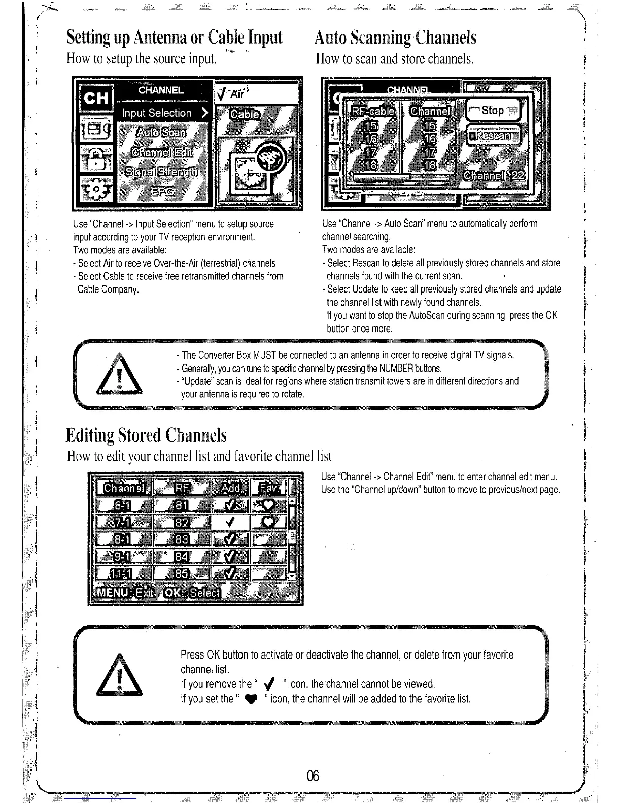 - The Converter Box MUST be connected to an antenna in order to receive digital TV signals.