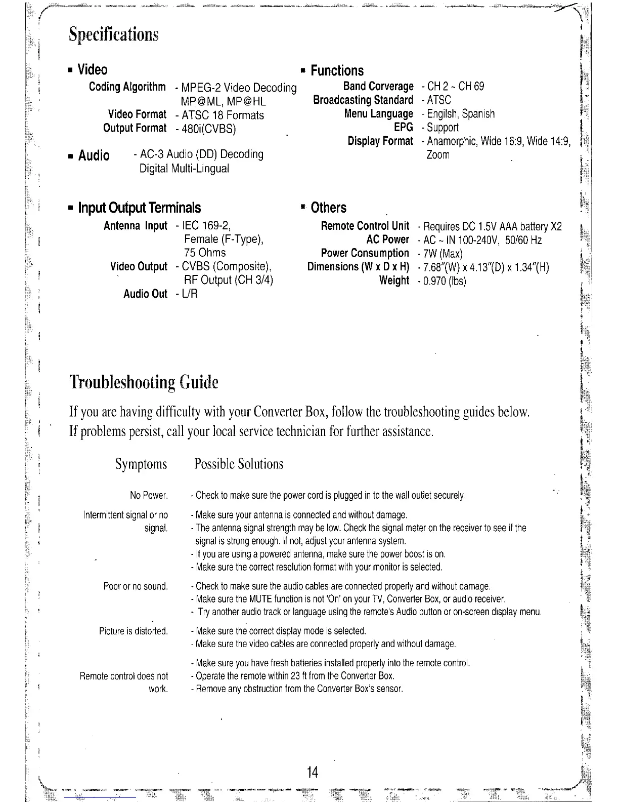If you are having difficulty with your Converter Box, follow the troubleshooting guides below.