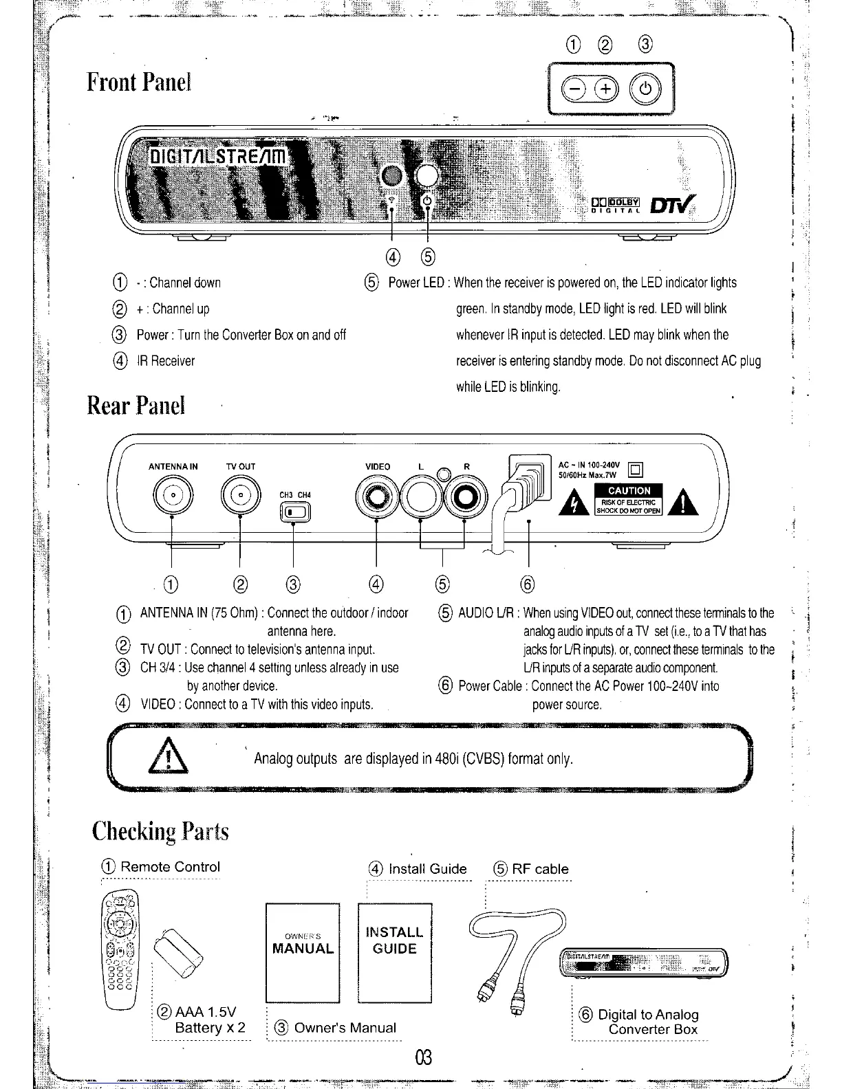 ANTENNA IN (75 Ohm) : Connect the outdoor / indoor