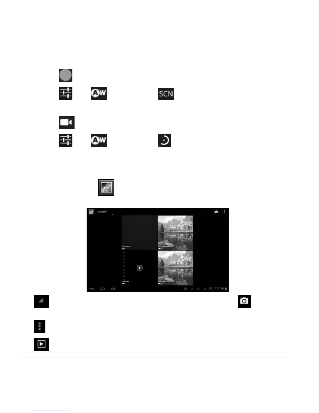 From your homescreen, click to view all pictures and videos saved onto the tablet.