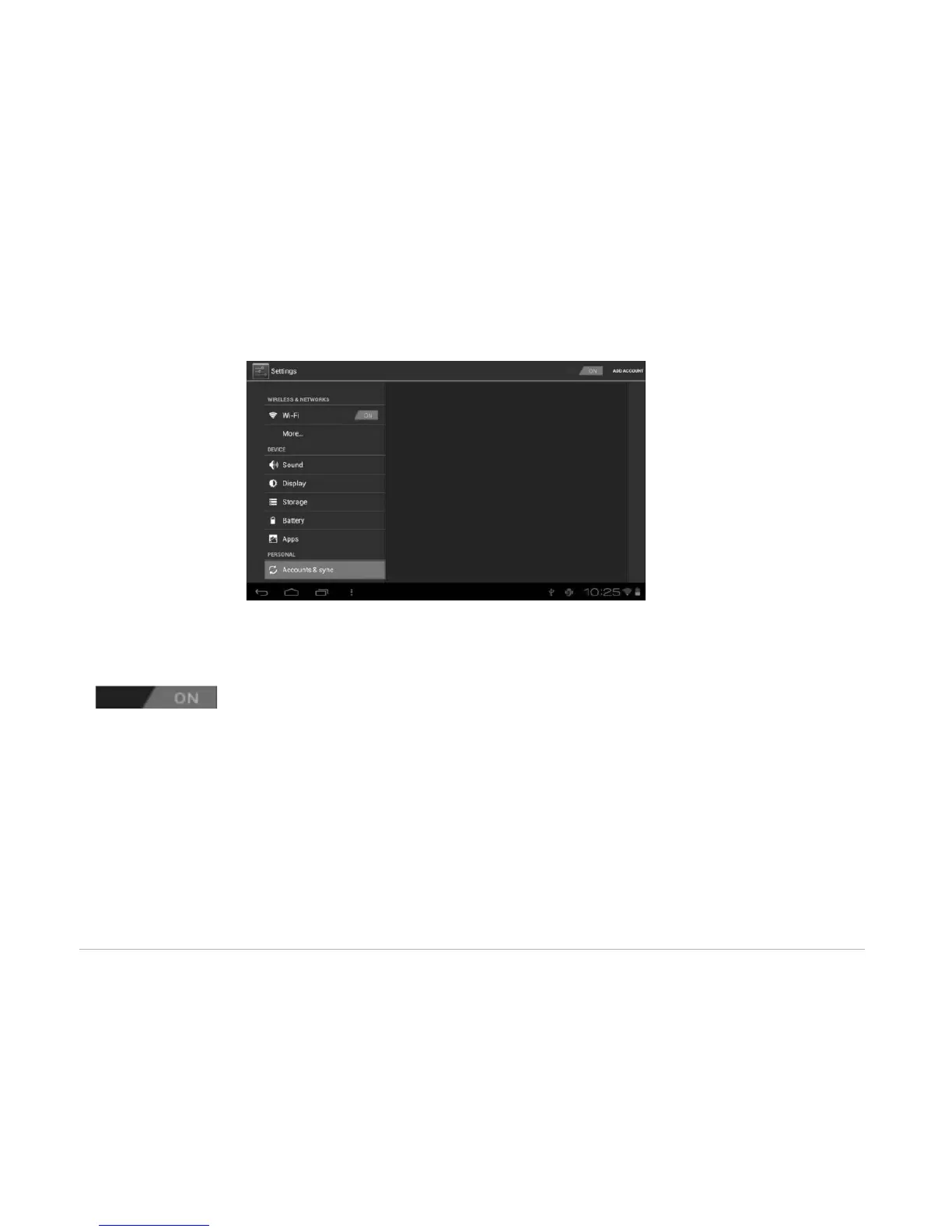 • Account Synchronization: Touch the Account Sync switch to enable or disable account