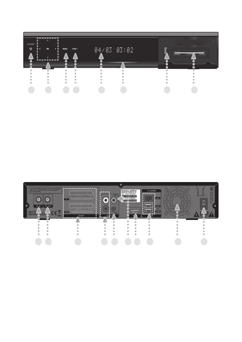 1. RF IN: Used to connect your aerial.