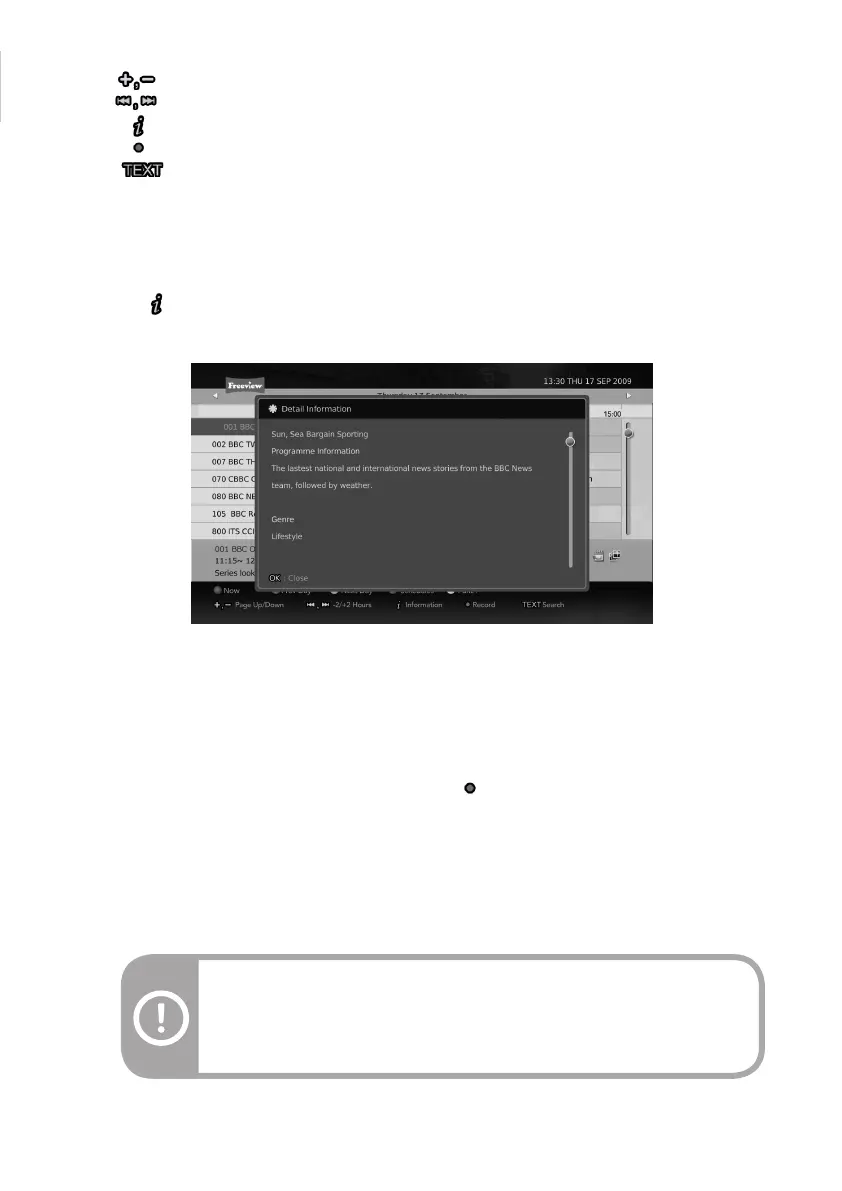 - : Press to view the programme information.