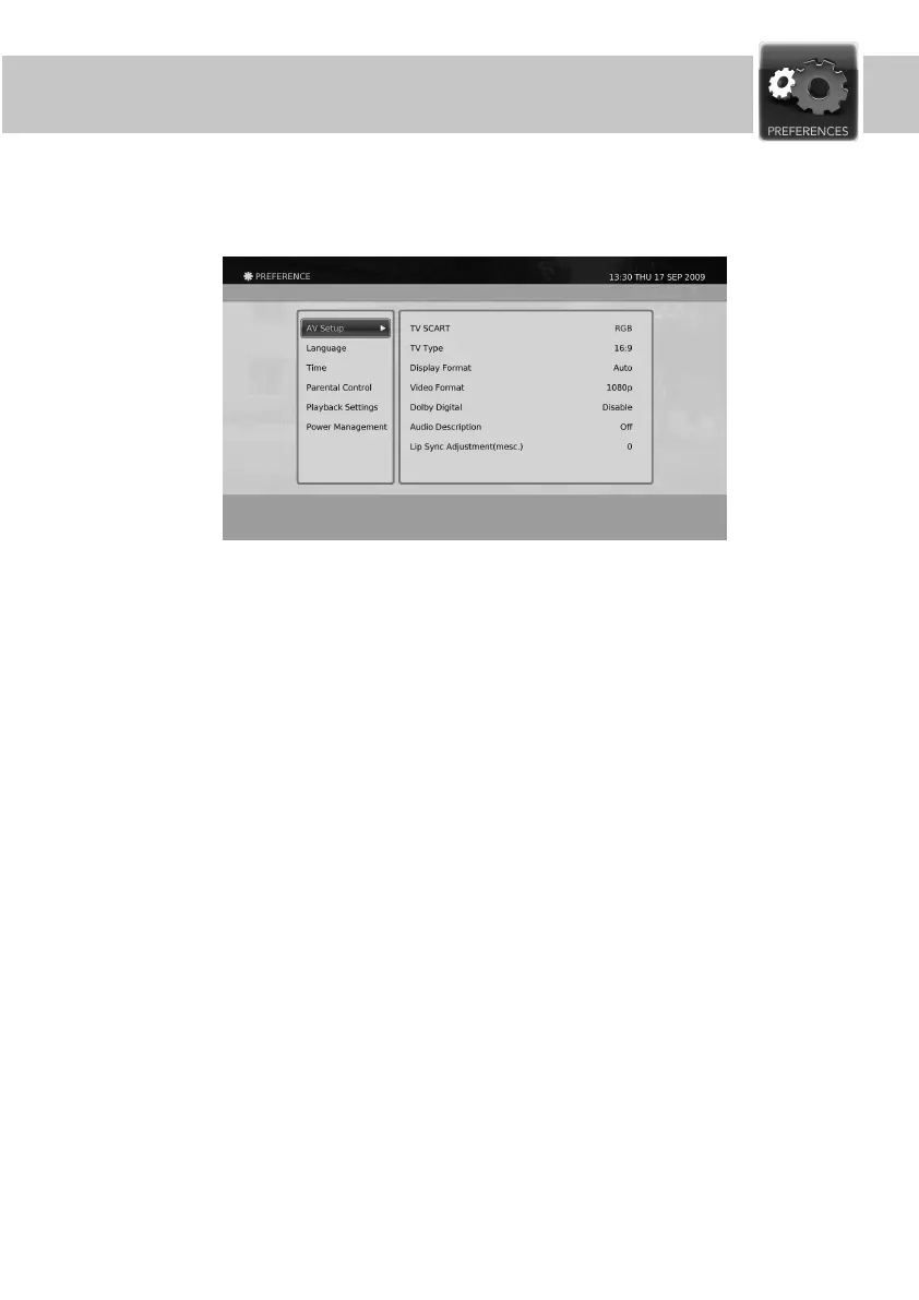 The Preferences menu lets you change the settings of your Digital PVR product.