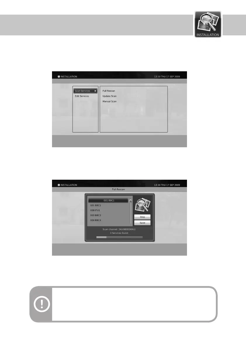 Warning : The Full Rescan will erase the previous service list.