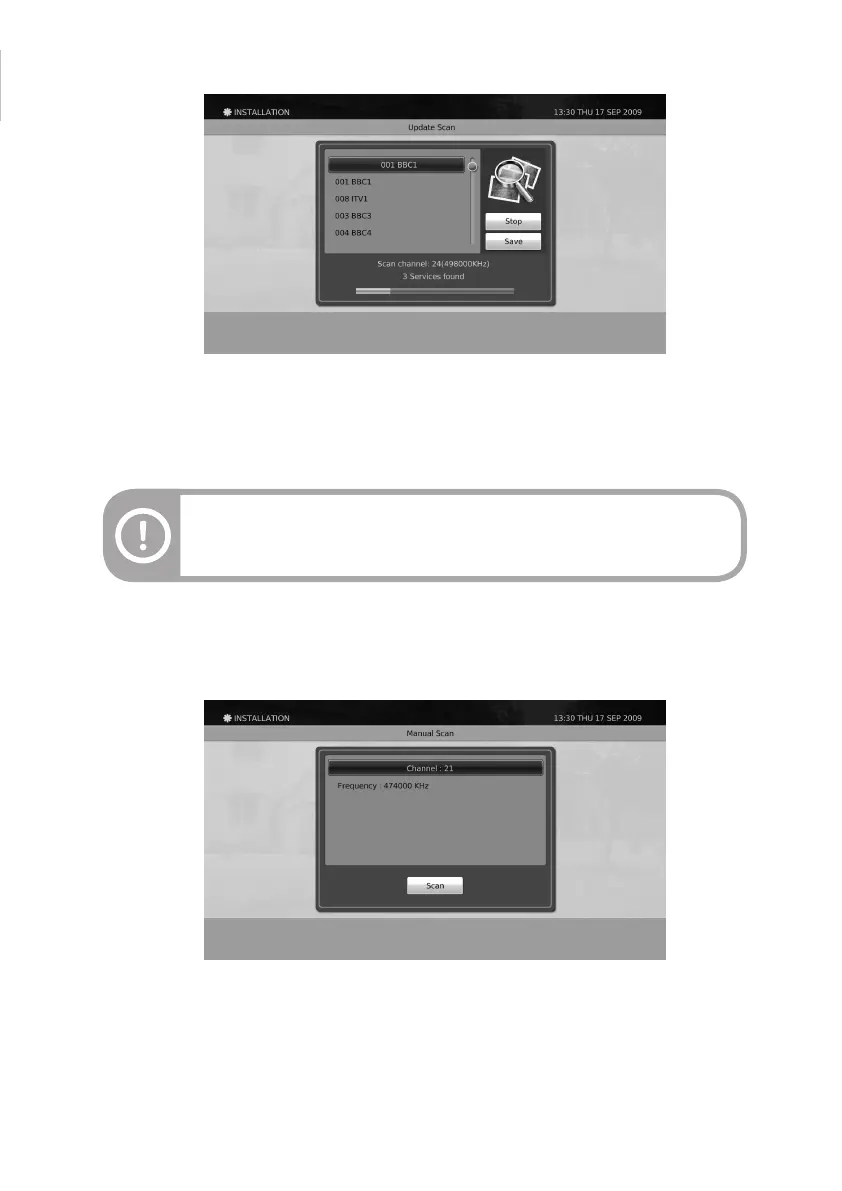 You can also manually scan services by selecting a particular frequency and press the OK button.