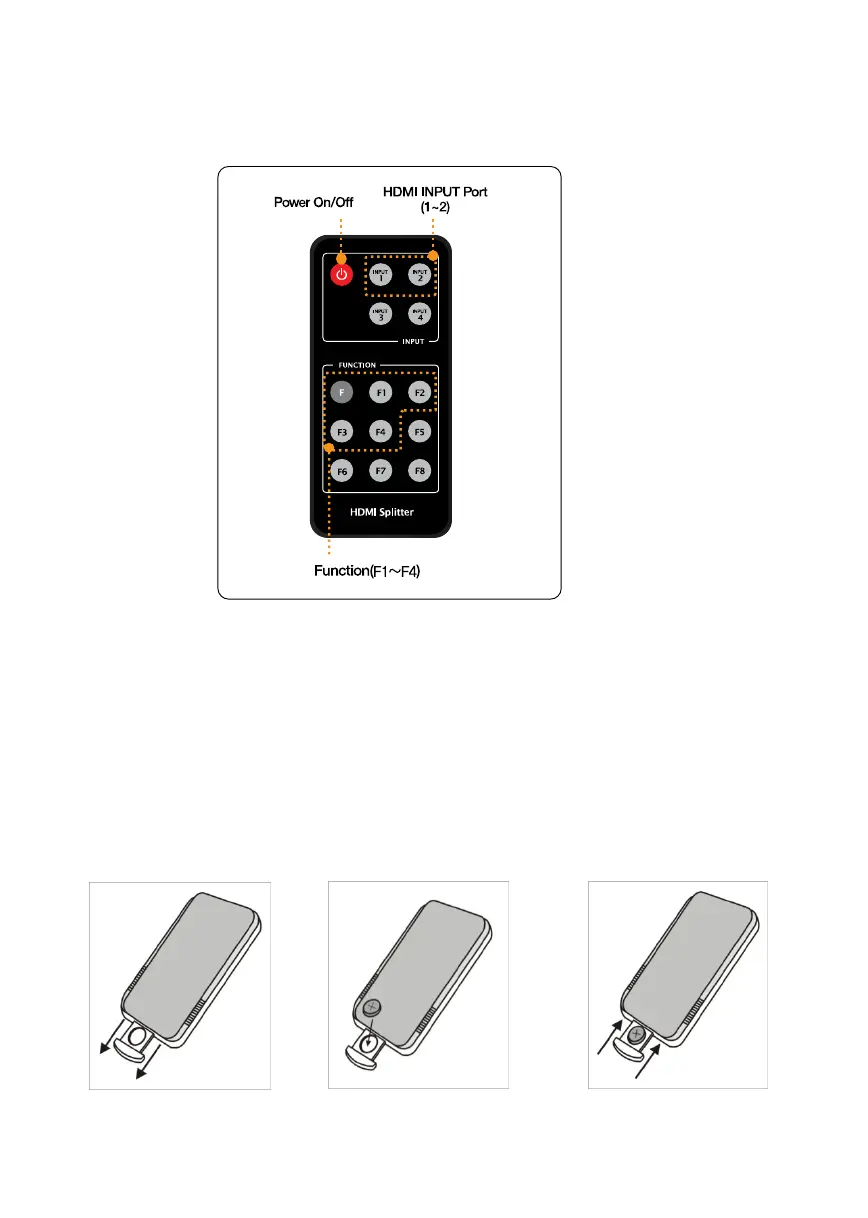 1. Pull out the insert part. 2. Insert battery after checking. 3. Push in the insert part.