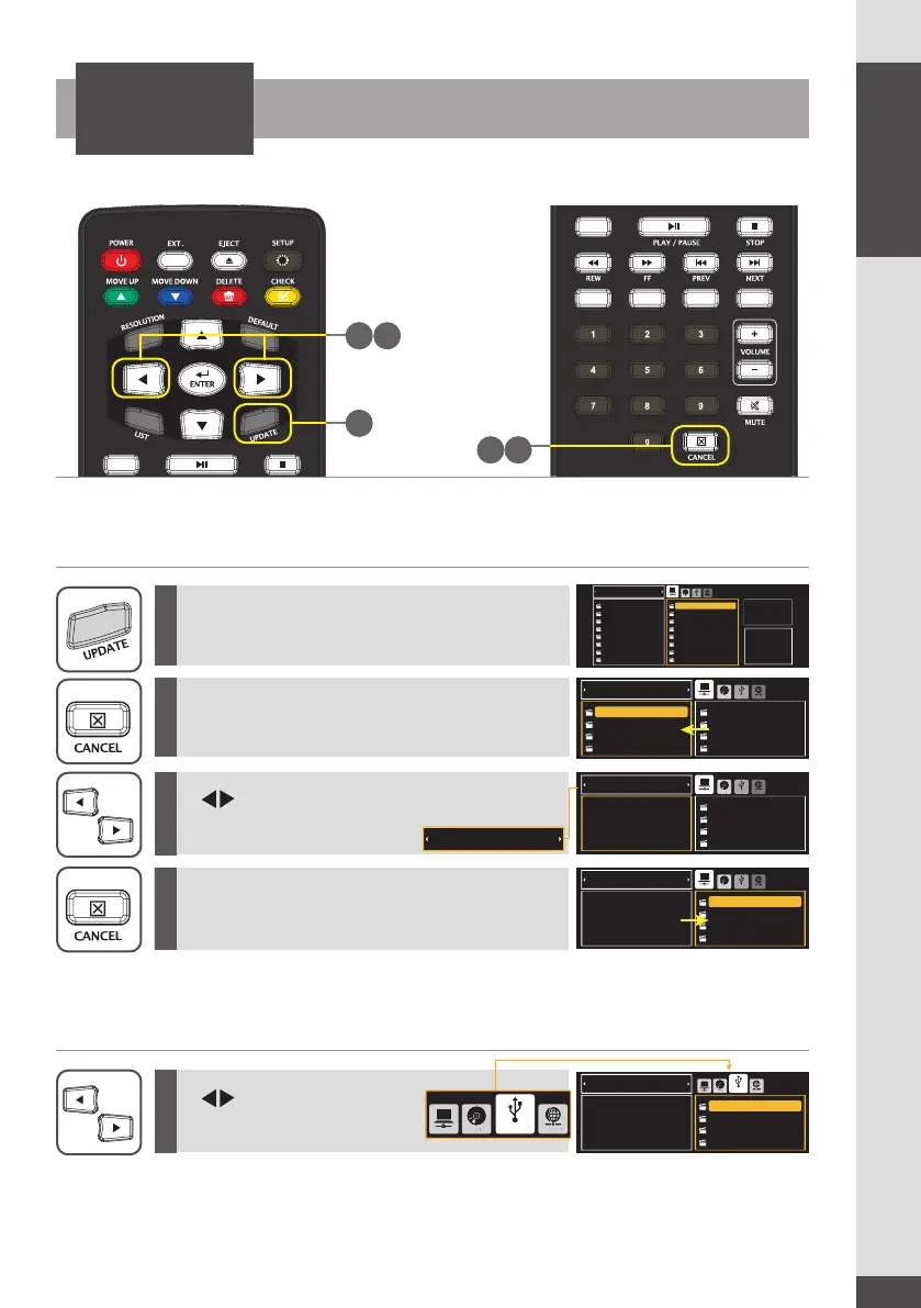 USB 저장 장치에 있는 영상 파일들을 업데이트할 수 있습니다.
