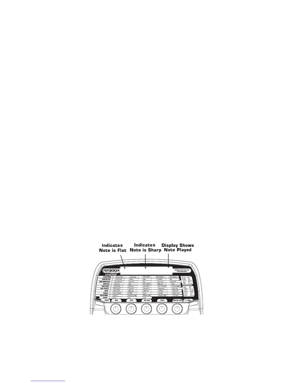 The Tuner in the RP300A allows you to quickly tune or check the tuning on your guitar. Enter