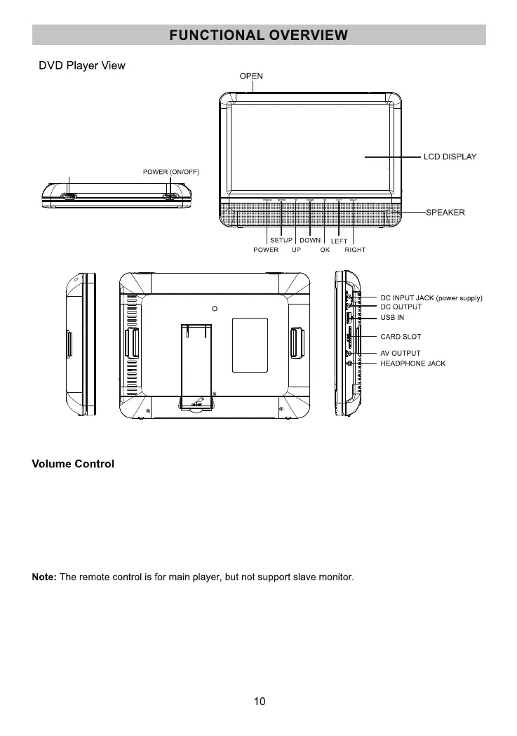 The main DVD player audio is set to a default of 10. Adjusting the audio on the main DVD player