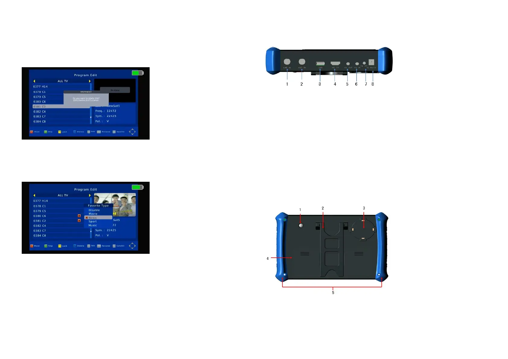1. Press [▲/▼] on channel list, select the channels which you want to edit in channel list by press [Blue/F4] Key.