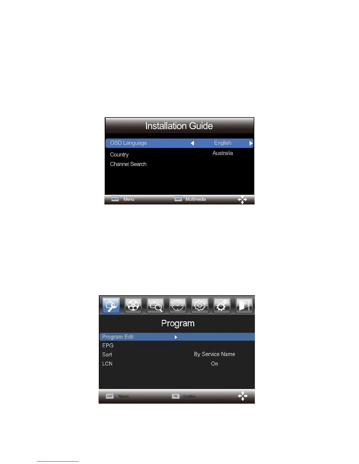 Press MENU and select Program using LEFT and RIGHT buttons. Press OK or DOWN