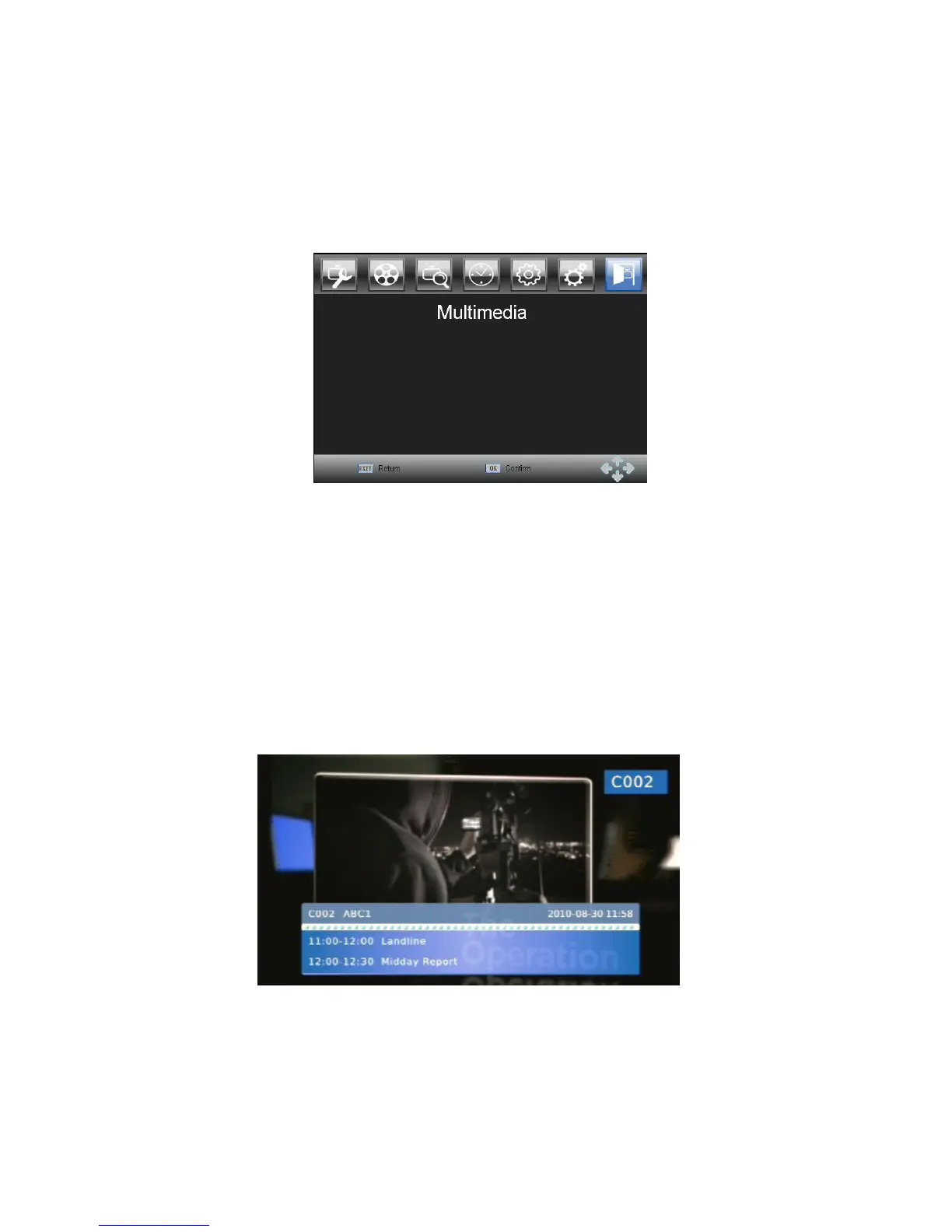 DOWN button to enter multimedia menu. Press EXIT to return the TV.