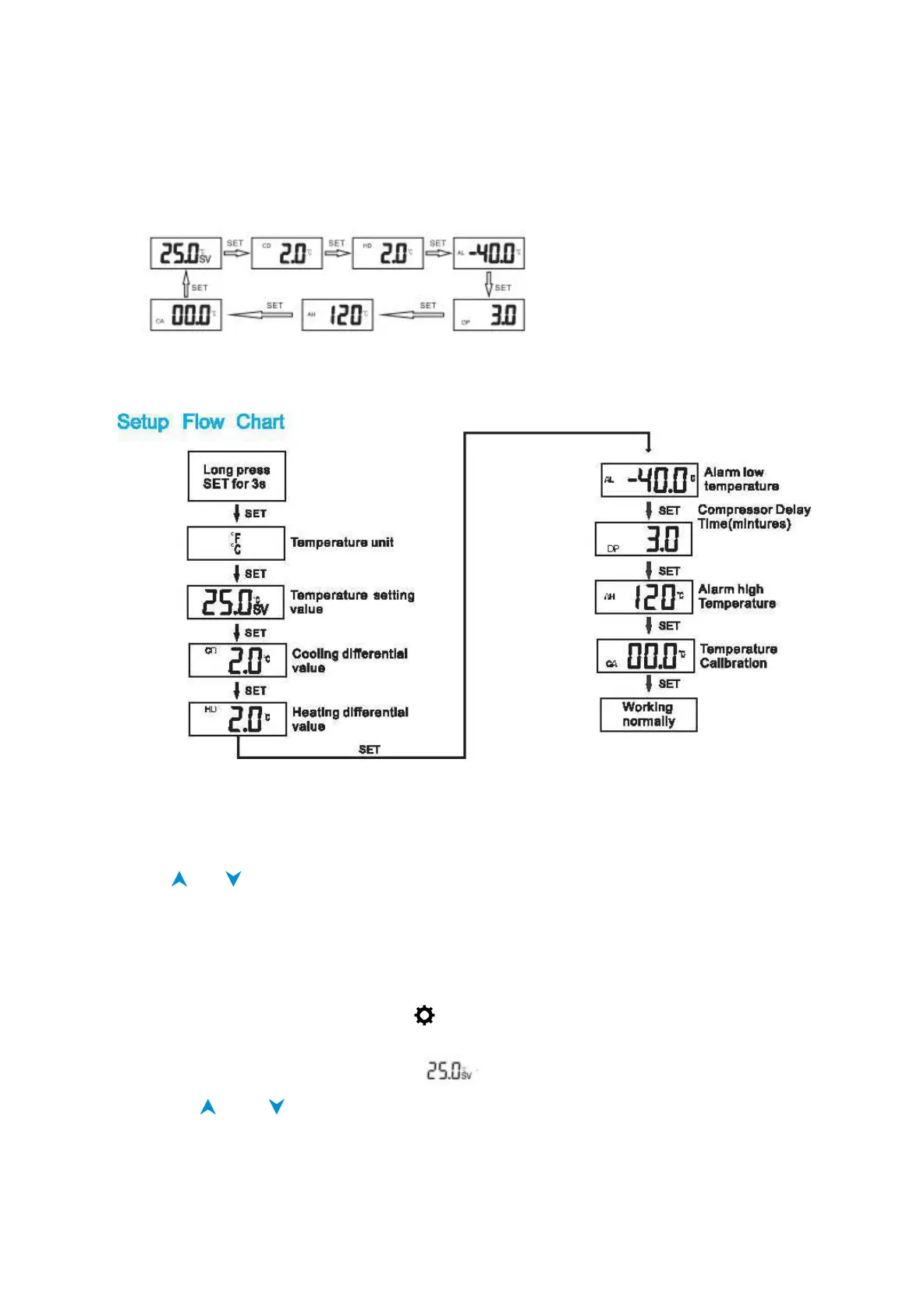 3. Press the and button to adjust the current SV value.