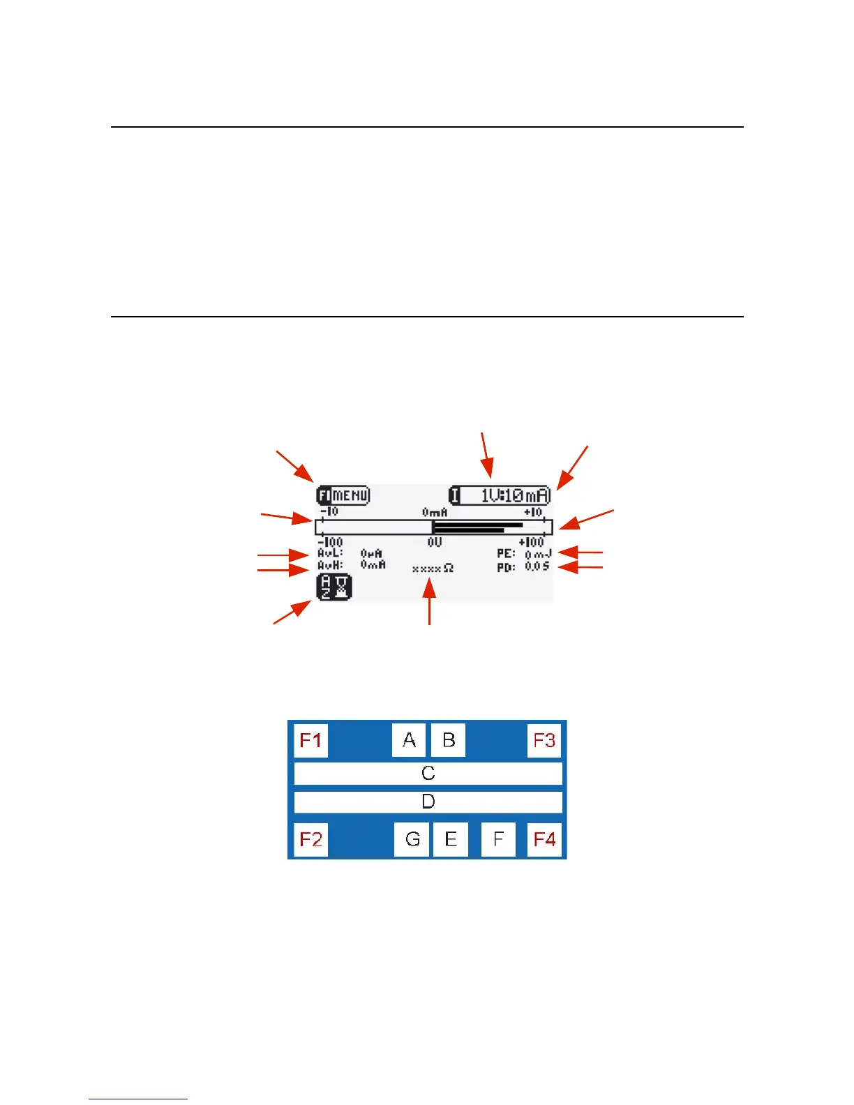 down functions of F3 and F4 in the Options Menu). Zones A to G display various icons, text and graphs