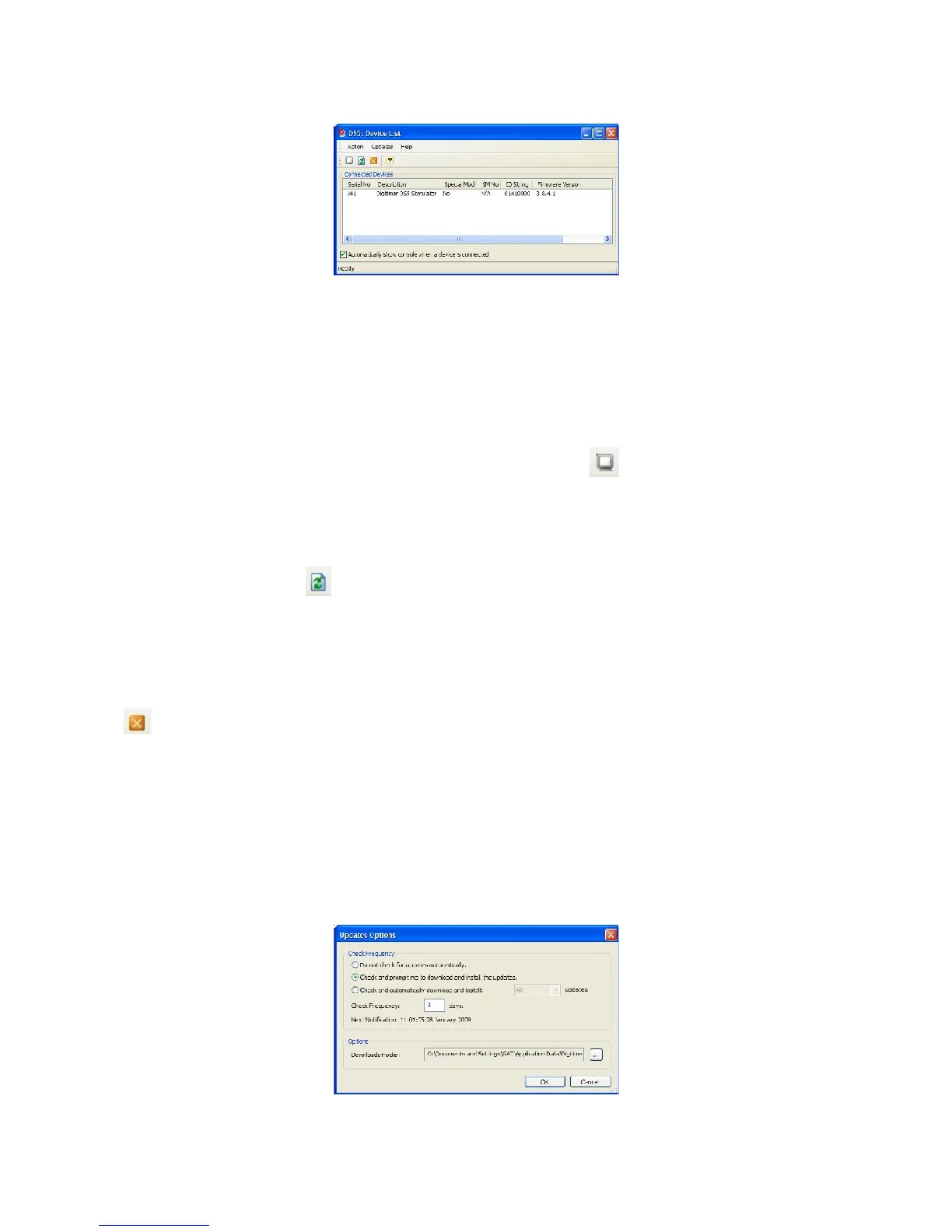 Device List Window has three menu bar commands, Action, Updates and Help and four icons which are