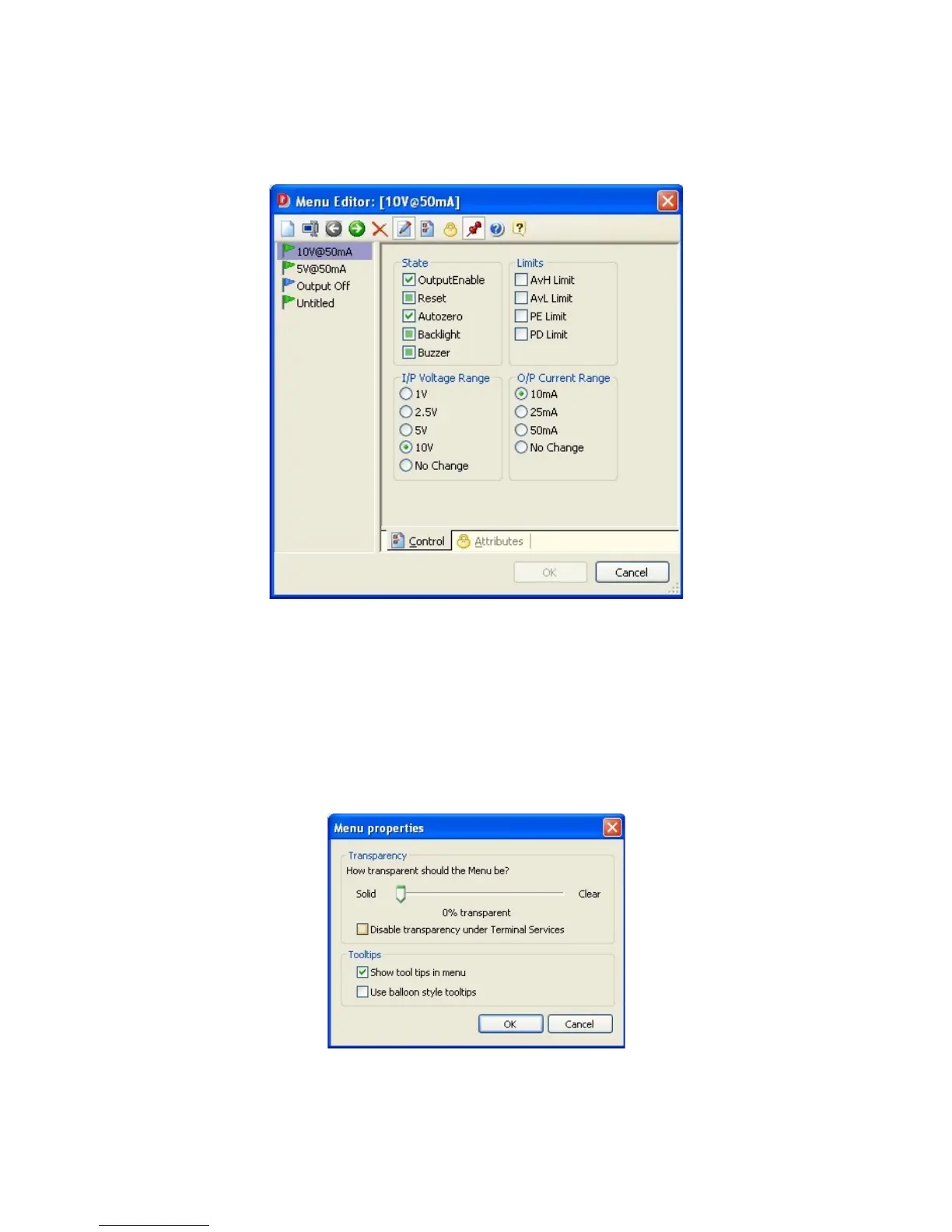 Allows the DS5 operator to alter the transparency of the Control Menu as well as define how Tooltips are