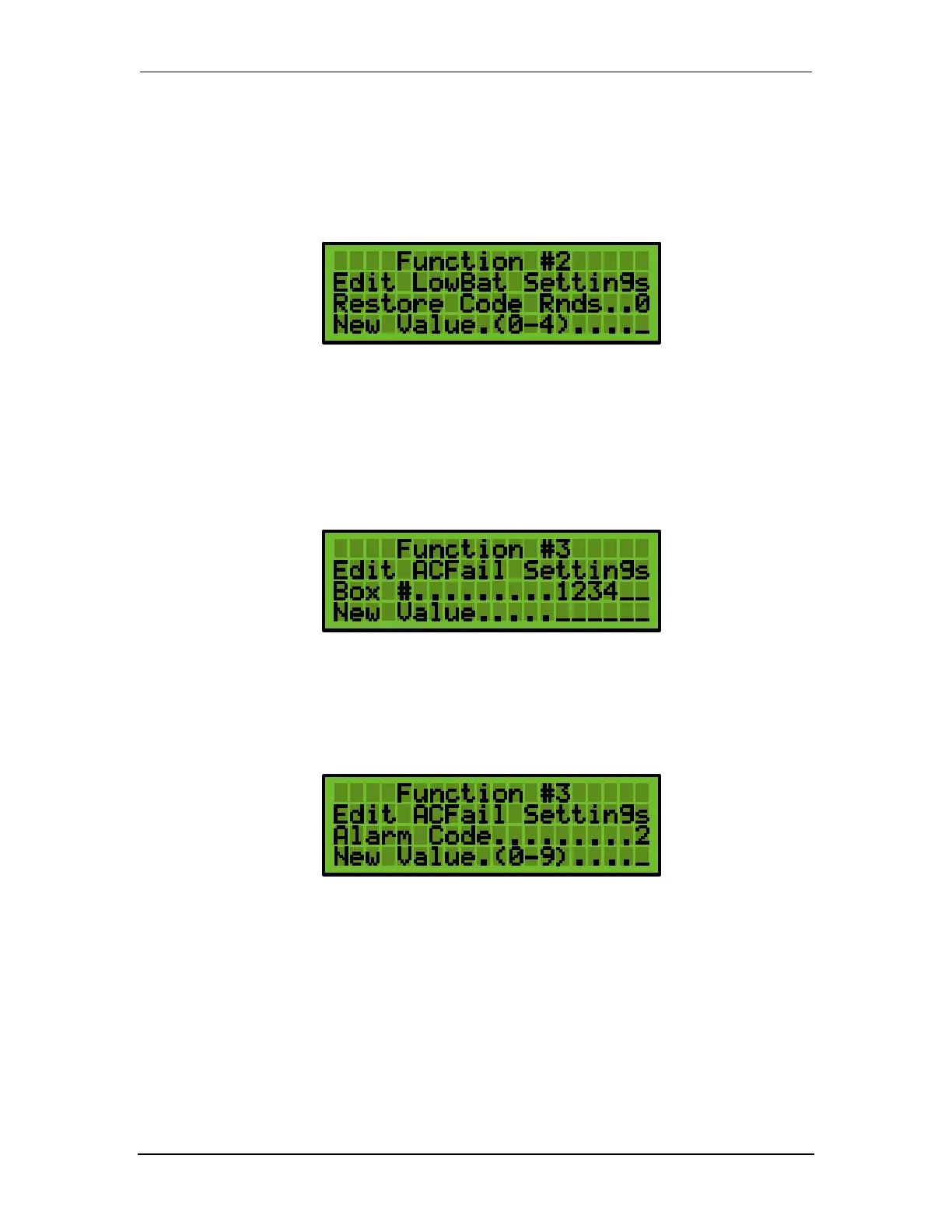 Default Setting: AC Fail Box Number: 125