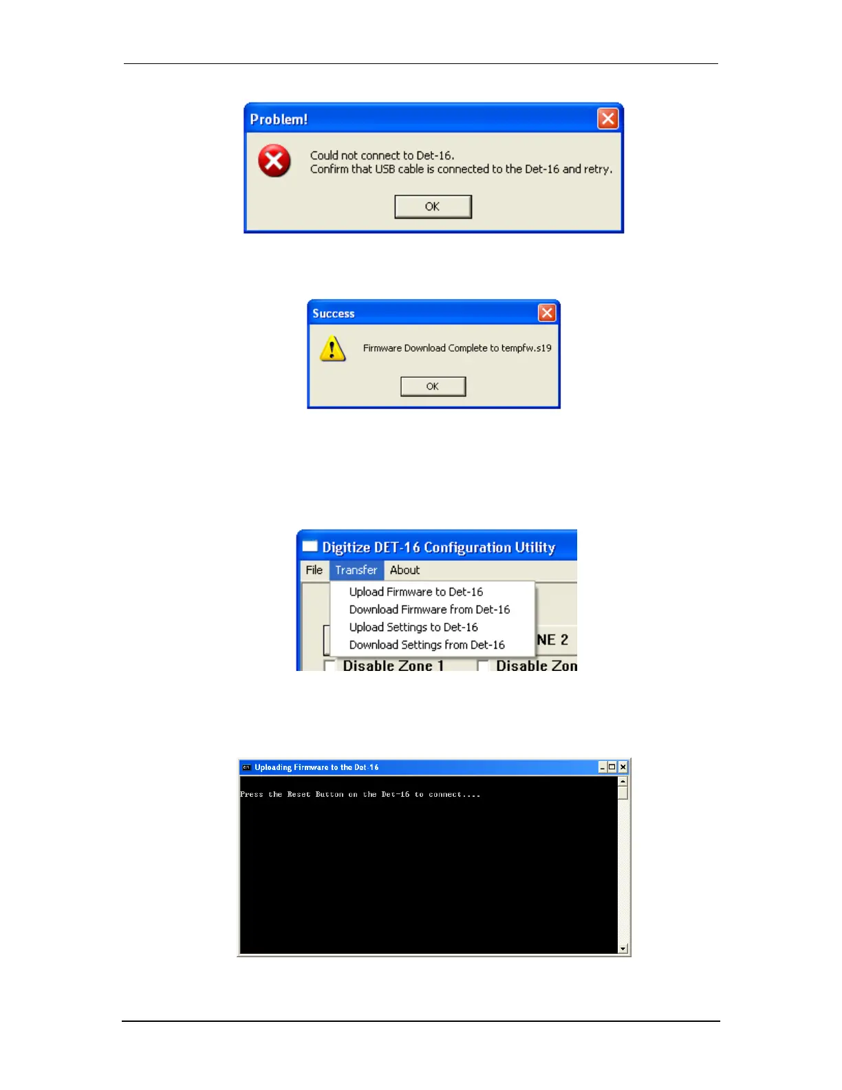 3. A new window will open. Press the Reset button on the Det-16 panel to start the upload.