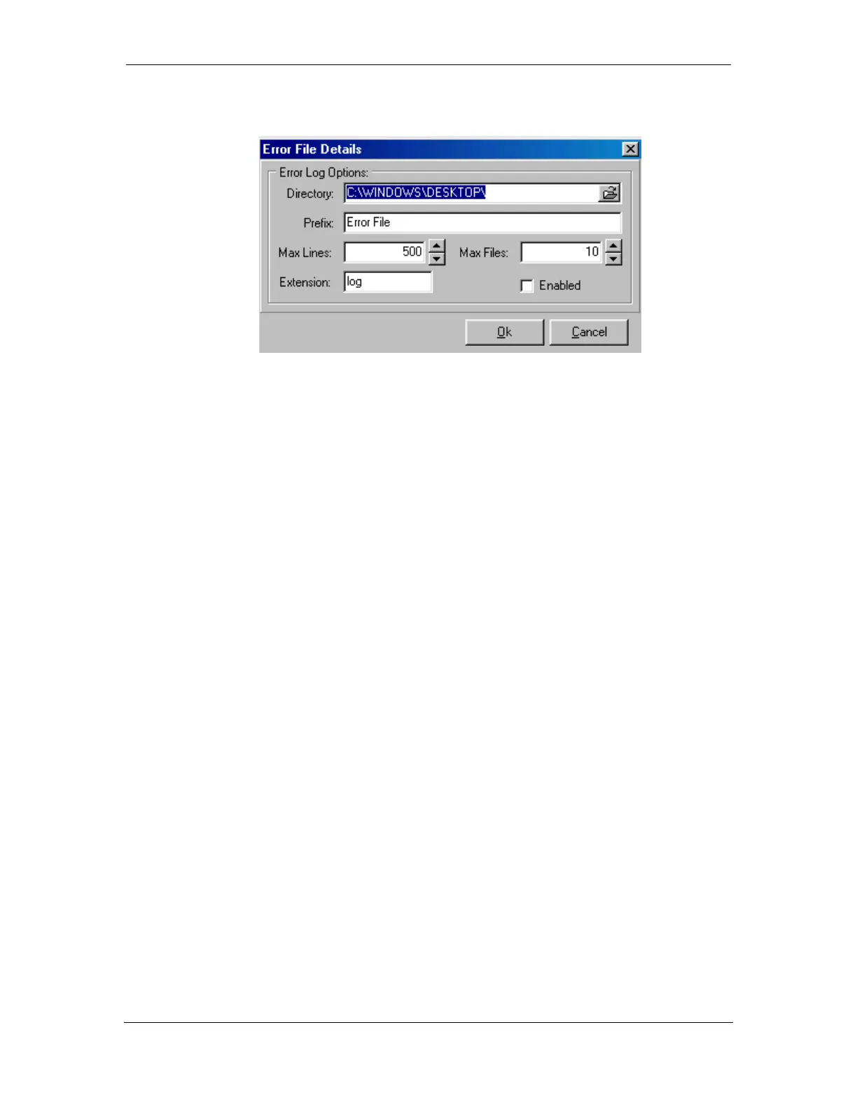 File Extension: The extension for the Error File. “Log” is customary, but you may