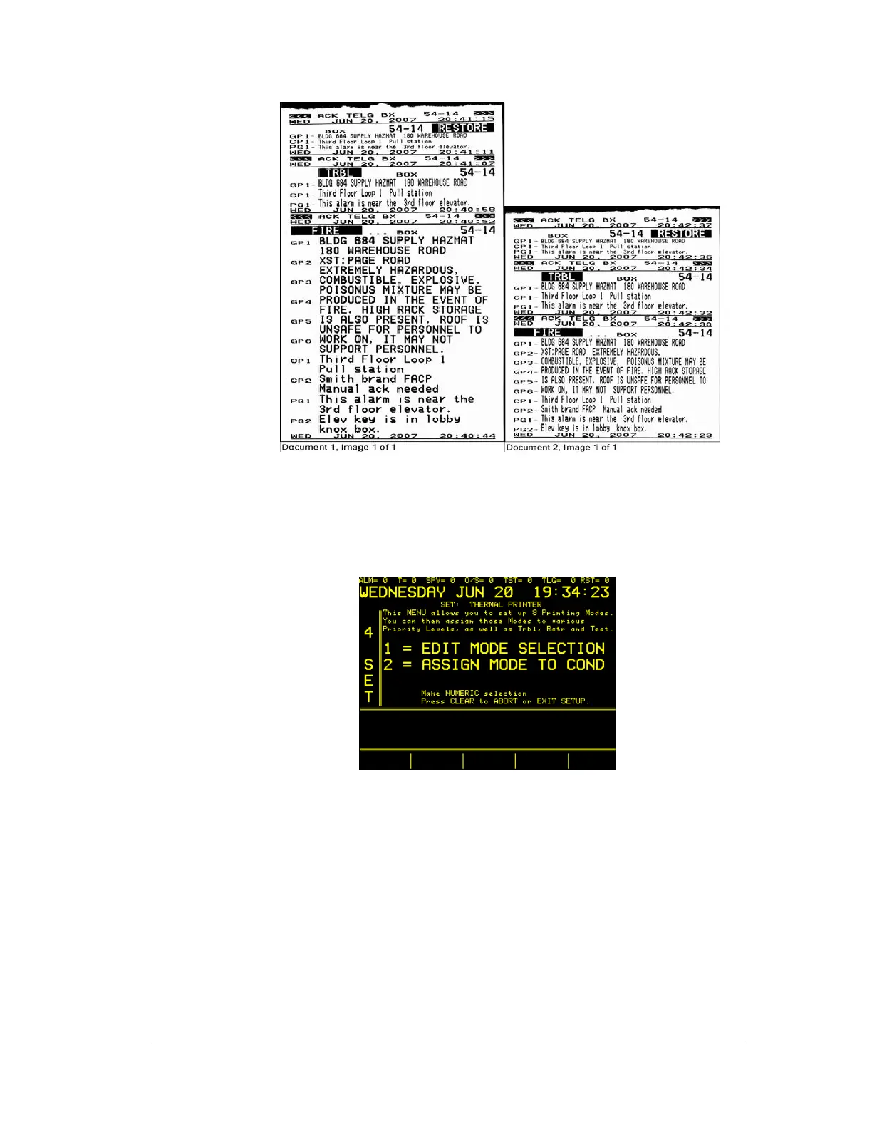 will be assigned to selected mode screen. Selection 4 (shown above) will print