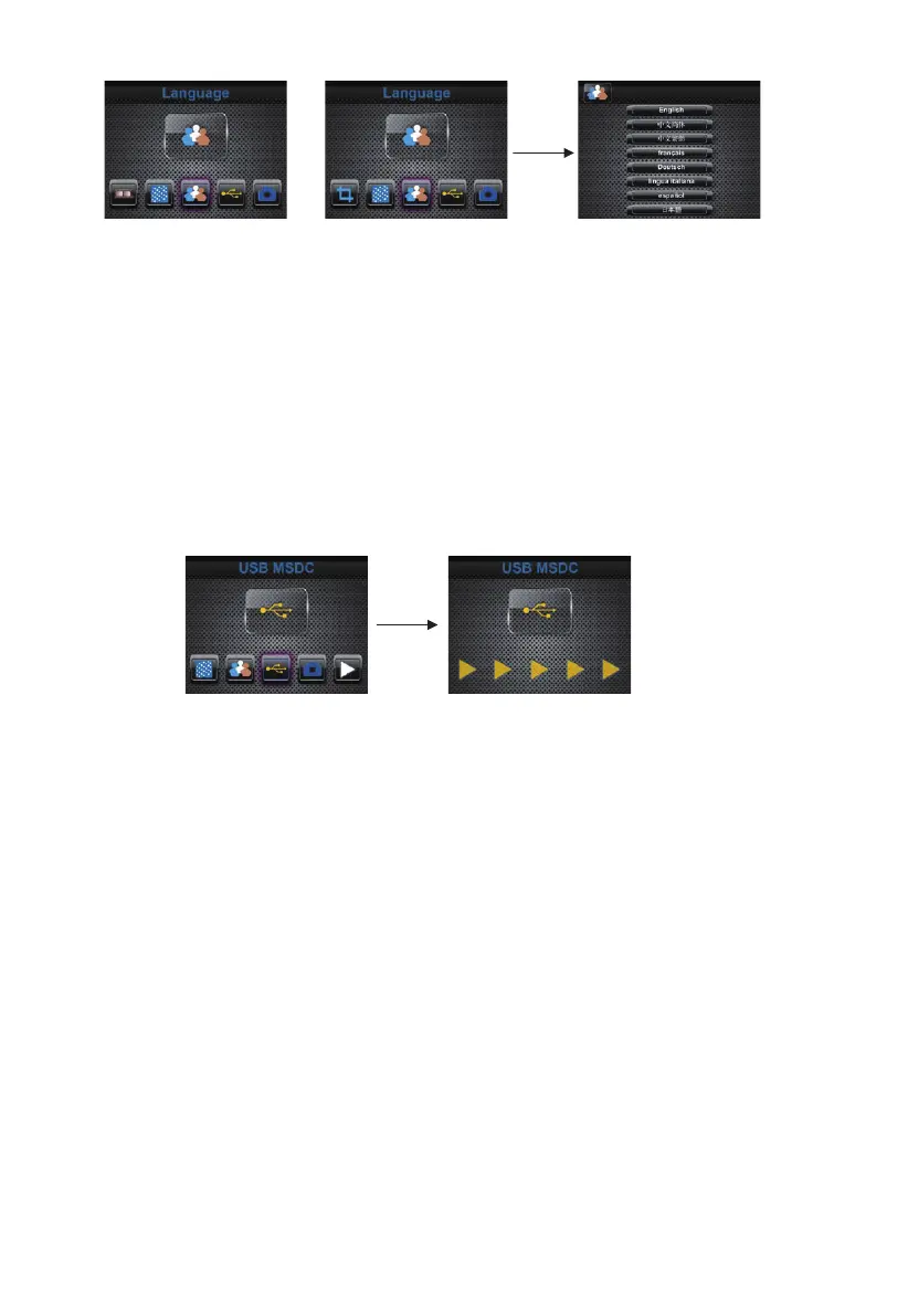 User can press LEFT/RIGHT button to select language, then press ENTER