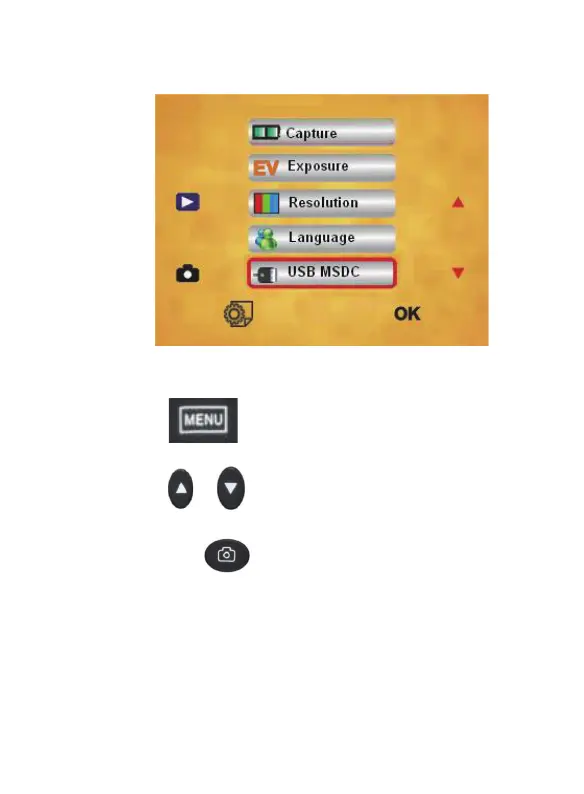 ”/ “ ” key to choose USB MSDC option
