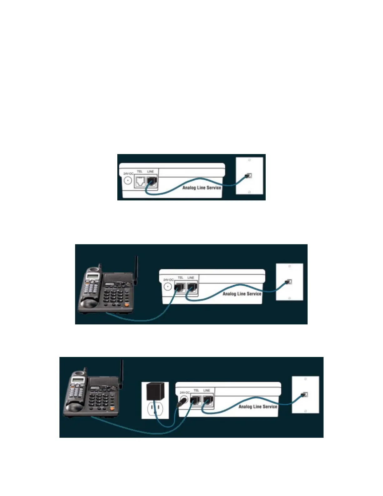 Phone jack, or VoIP adapter’s Phone jack and then to the Line Port on the DPS3.