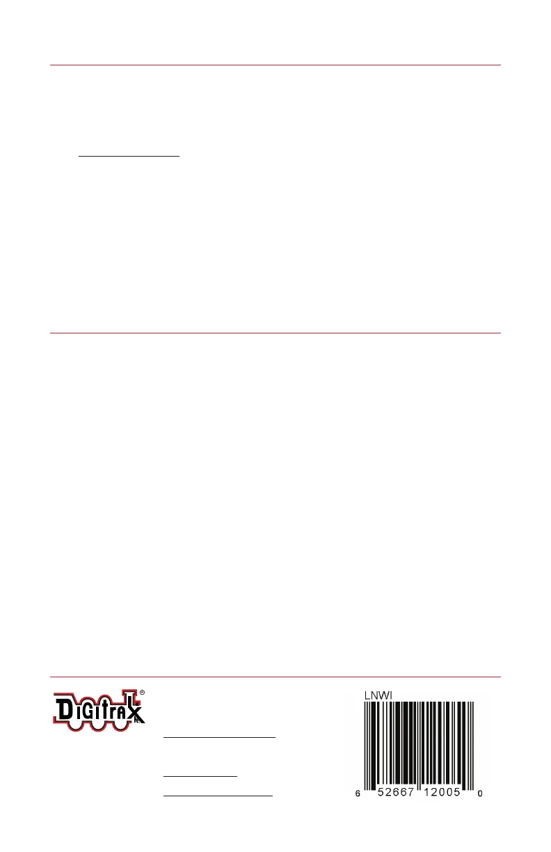 Visit www.digitrax.com for complete warranty details and instructions for