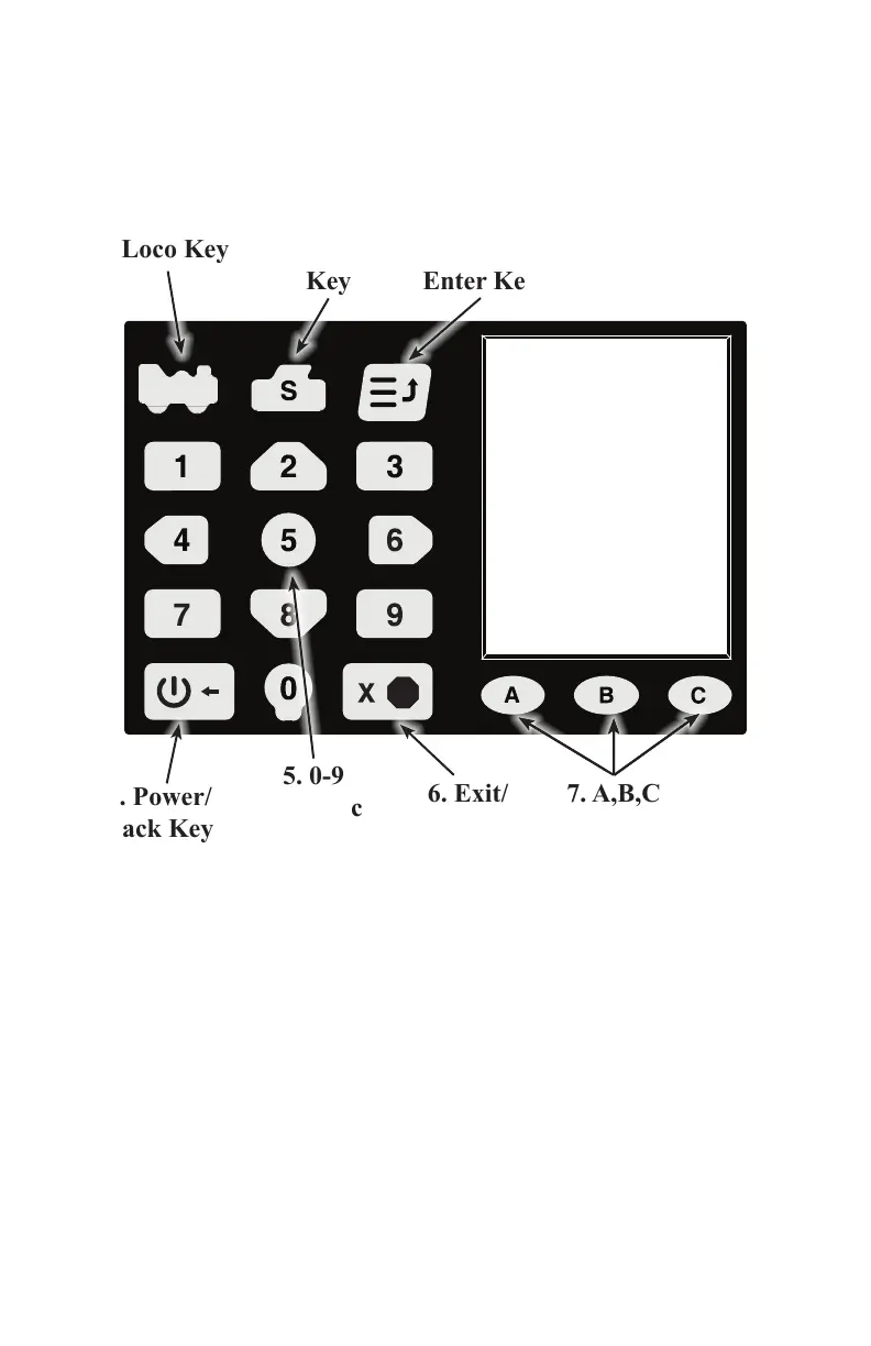 4. The Power/Back Key is primarily used to turn track power on or o.